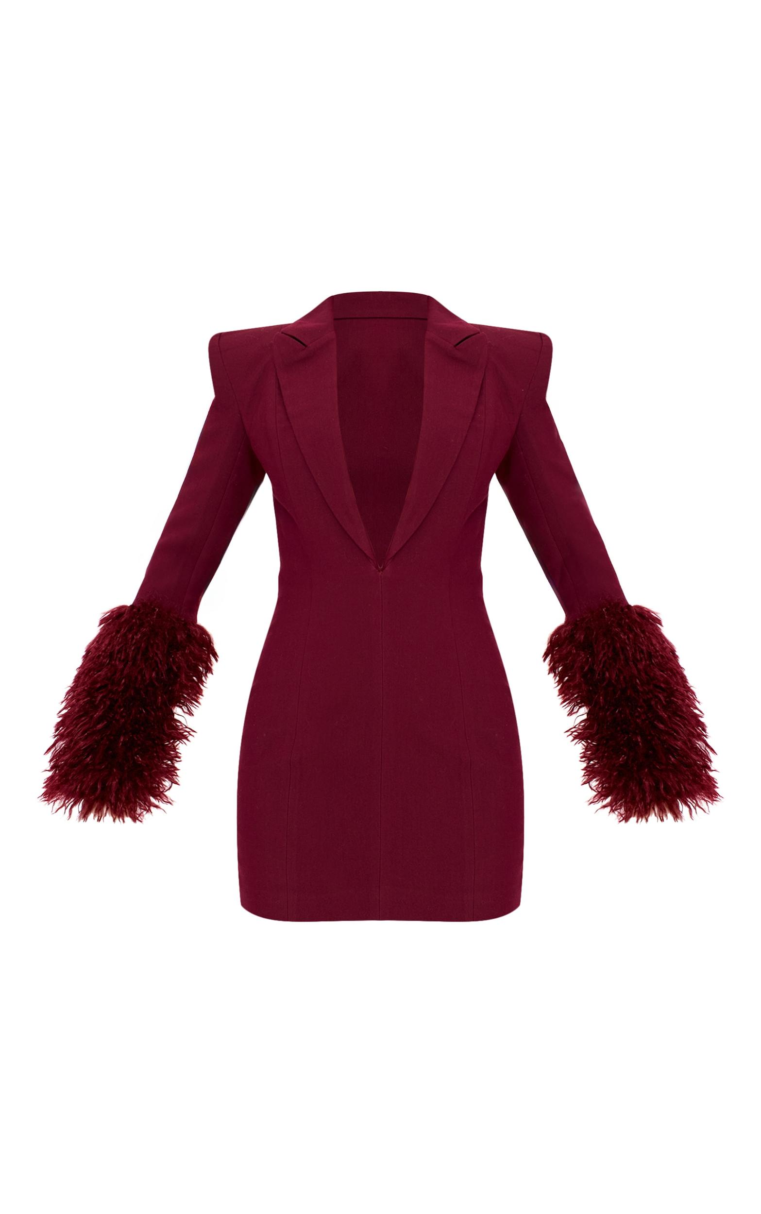 For instant elevation, make it PLT label. Make a statement in this plt label burgundy faux shearling cuff tailored blazer dress. Made from burgundy hue material, this blazer dress has faux shearling cuffs and a plunging neckline. Add barely-there heels to let the dress do the talking.Model Height - 5ft 6inchp]:!mb-4inch>Brand: PrettyLittleThingCategory: DressesProduct type: Blazer DressColor: BurgundyMaterial: Tailored WovenDesign: PlainNeckline: PlungeSleeves: LongOccasion: Evening