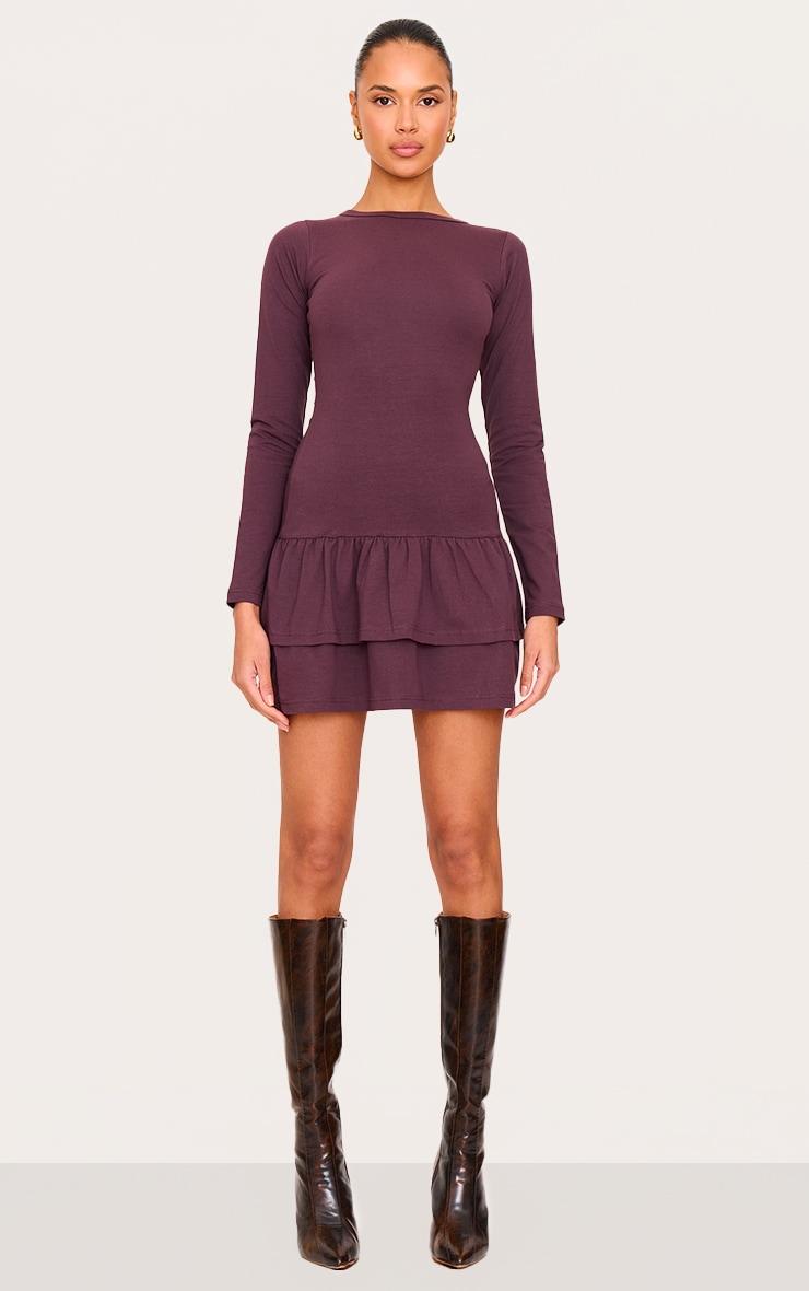 Elevate your weekend style with this plum cotton long sleeve tiered shift dress. Brought to you in a seasonal plum tone, with a cosy cotton material and flattering tiered design, this shift dress deserves to be in your collection. Style with some gold accessories and a pair of boot heels for a fool proof finish. Length approx 105.5cm/41.5inch (Based on a sample size UK 8) Model wears size UK 8/ EU 36/ AUS 8/ US 4Model Height - 5ft 9inchp]:!mb-0inch>Category: DressesProduct type: Shift DressColor: PlumMaterial: Cotton JerseyDesign: PlainNeckline: CrewSleeves: LongOccasion: Day