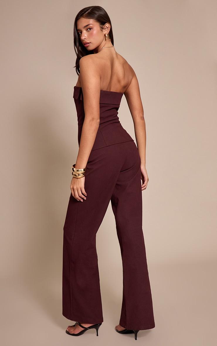 Dial up the drama for your next night out in the plum faux suede bandeau foldover jumpsuit. Its striking bandeau neckline, complete with a contemporary foldover detail, highlights the decolletage, leading into a refined bodice. The wide-leg pants cascade to the floor, offering an elongated, confident line. Pair with strappy high heels to maximise the leg-lengthening effect, then finish the look with bold gold earrings and a simple clutch. This effortlessly chic piece is your answer to sophisticated evening dressing.Length approx 145cm/57inch (Based on sample size US 4)Model wears size UK 8/ EU 36/ AUS 8/ US 4Model Height - 5ft 8inchp]:!mb-4inch>Brand: PrettyLittleThingCategory: DressesProduct type: Wide Leg JumpsuitColor: PlumMaterial: Faux SuedeOccasion: Evening
