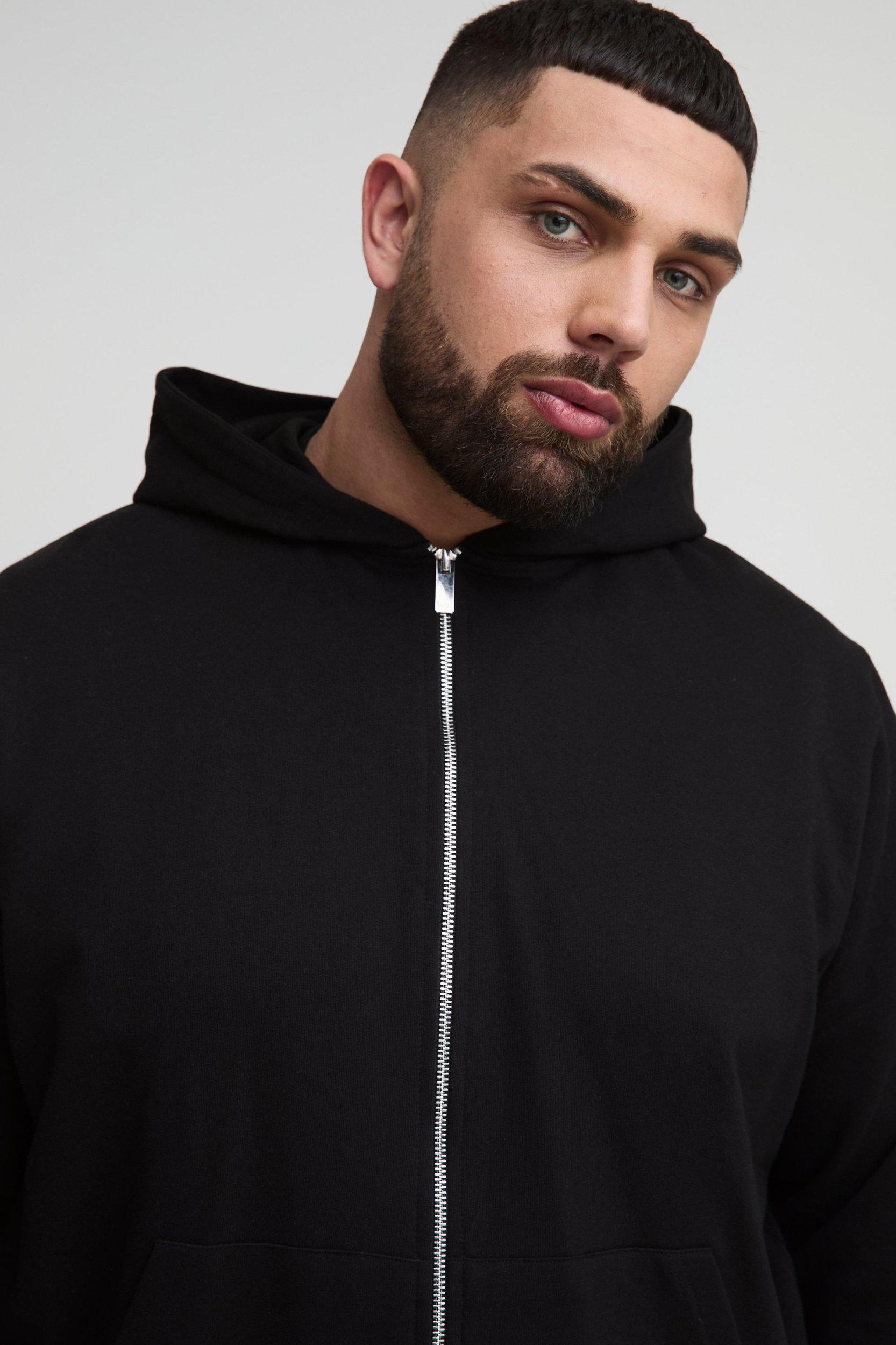 Plus 260GSM Loopback Regular Fit Basic Zip Through Hoodie | boohooMAN USA