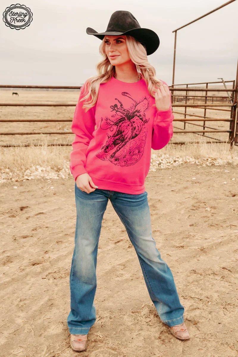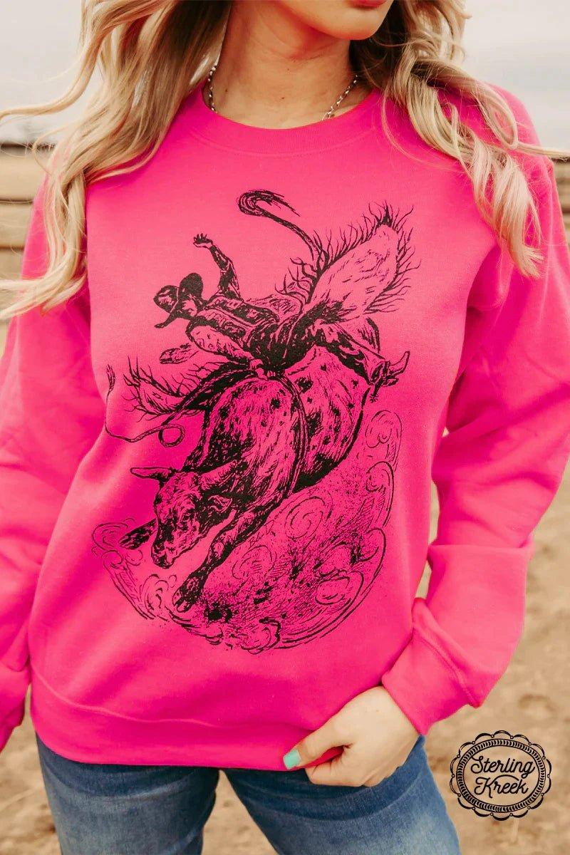 Climb in the buckin' chutes for some serious style with our PLUS Bullrider Pullover! Featuring a hand-drawn bull rider design, this pullover is sure to mak...