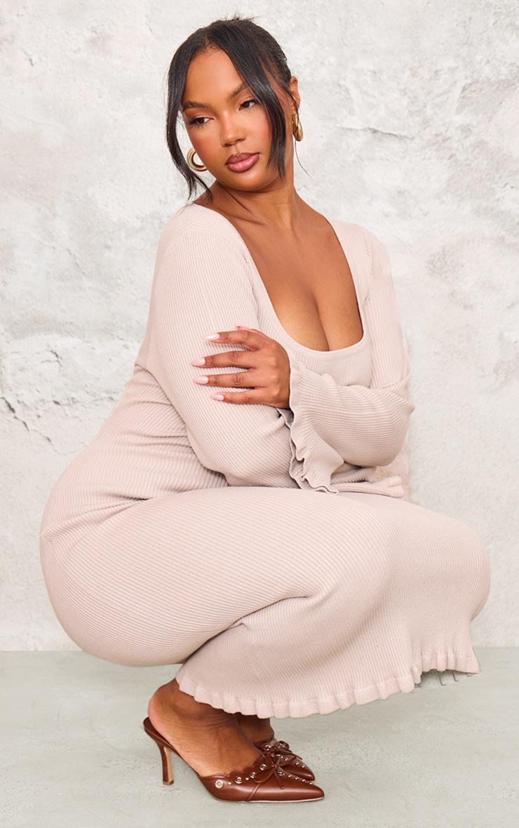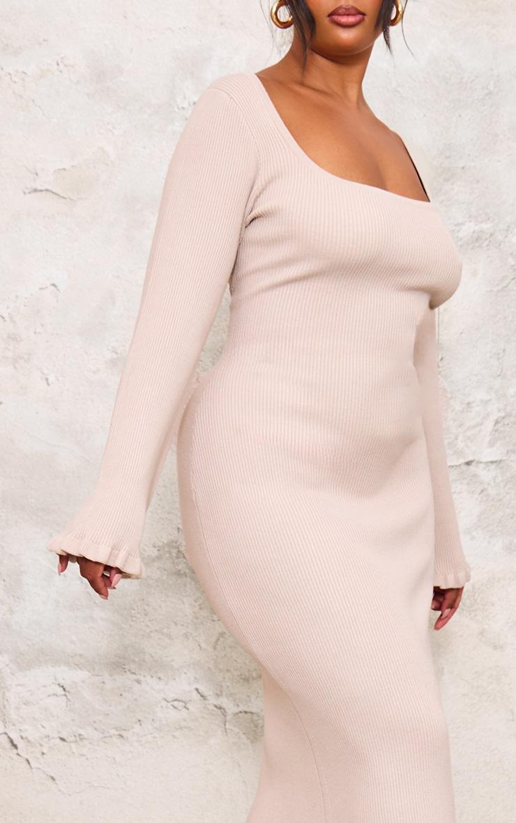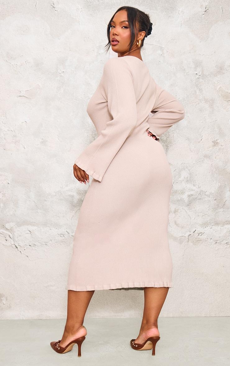Enter the new season in style with this plus beige rib knit piquet hem midi dress. Brought to you in a beige rib knit material with long sleeves, a piquet hem and a figure-hugging midi length, what's not to love? Style this midi dress with court heels and gold accessories for a simple yet chic look that is sure to steal all the stares. Length approx 140cm/55inch (Based on a sample size XL) Model wears size XLModel Height - 5ft 6inchp]:!mb-0inch>Category: KnitwearProduct type: Bodycon DressColor: BeigeMaterial: KnitDesign: PlainOccasion: Day