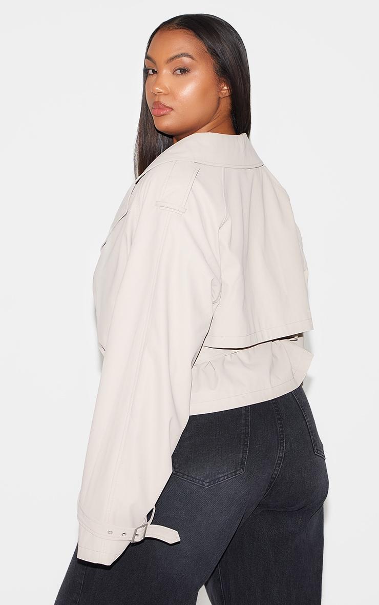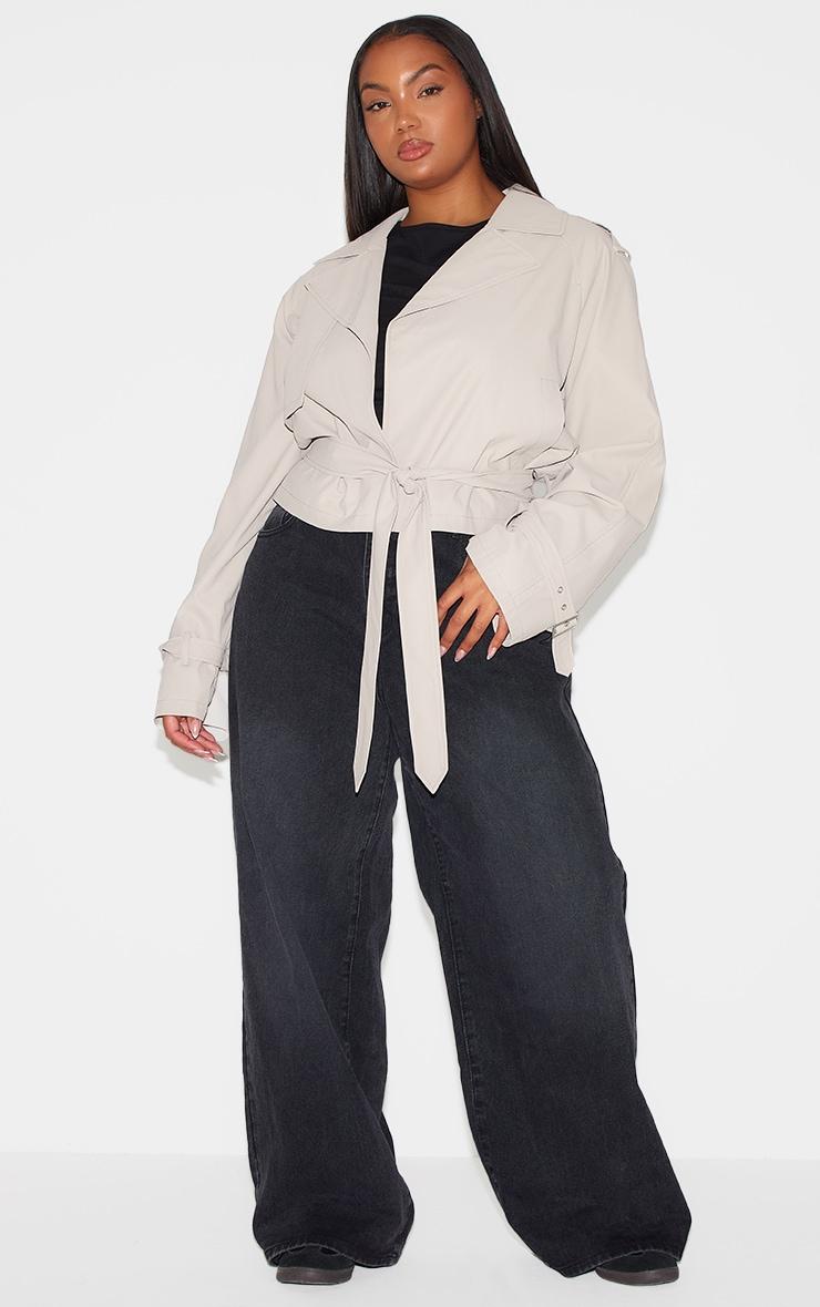 Instantly elevate your look with this plus beige rubberised loose fit cropped trench coat. Brought to you in a neutral beige shade, with a luxe loose fit design and cropped finish, howe can you say no? Style with a black outfit and simple accessories for a chic finish like no other. Team this plus beige rubberised loose fit cropped trench coat with a pair of wide leg pants and a pair of sneakers to finish off the look we are loving right now.Length approx 58.5cm/23inch (Based on sample size XL)Model wears size XLModel Height - 5ft 6inchp]:!mb-4inch>Brand: PrettyLittleThingCategory: OuterwearProduct type: TrenchColor: BeigeMaterial: PlasticOccasion: Day