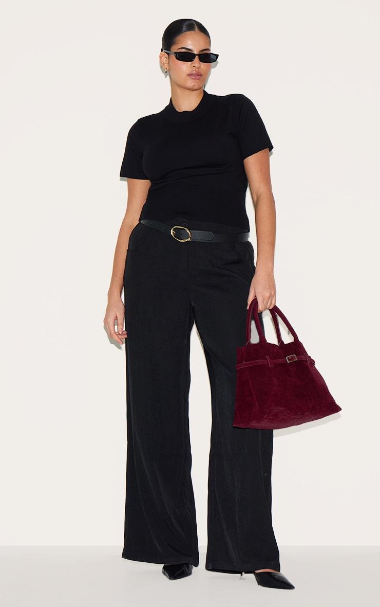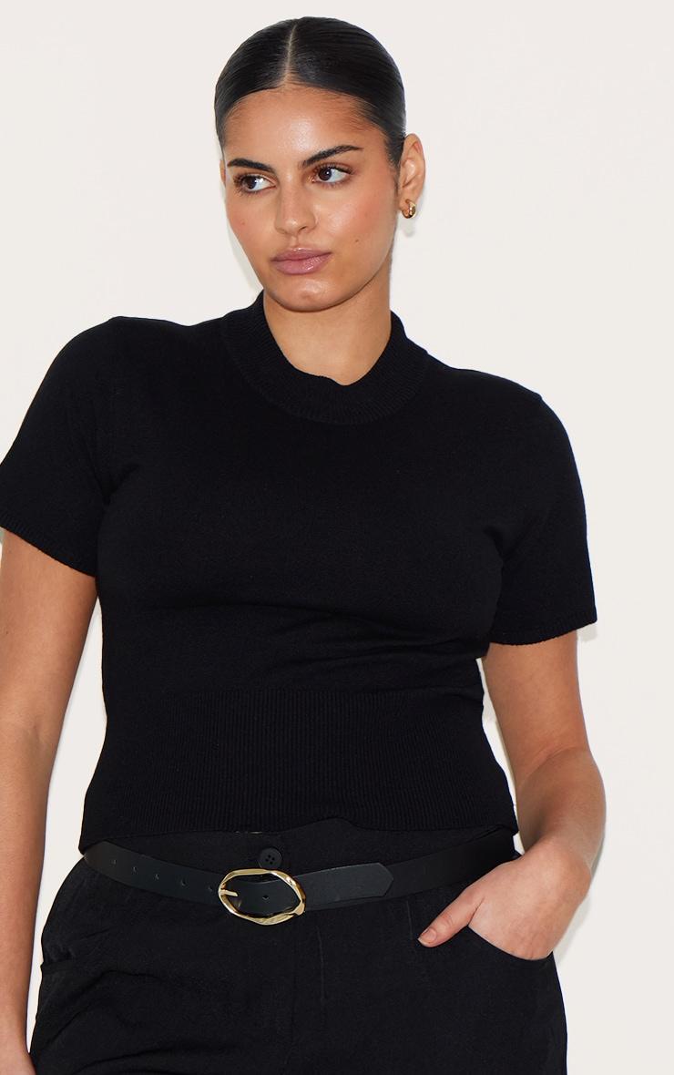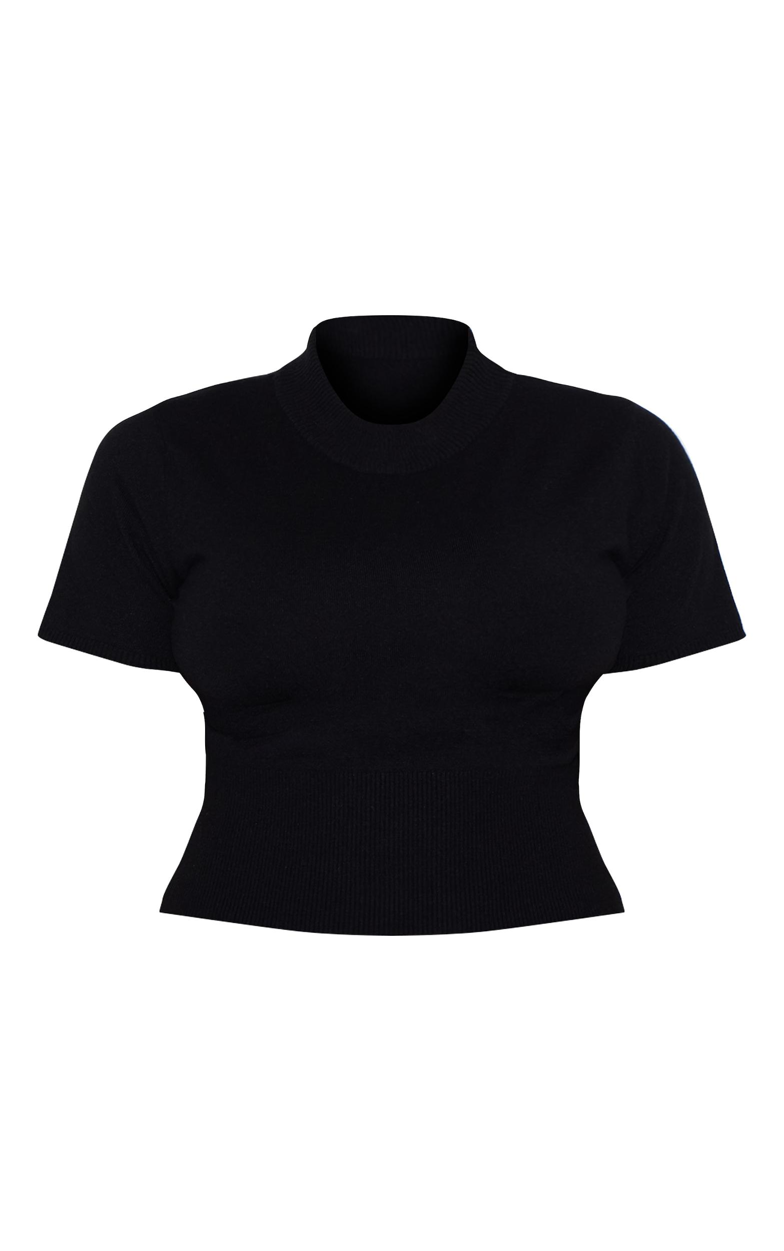 The foundation of a considered wardrobe begins with pieces that offer both versatility and enduring appeal. This black knit t-shirt is crafted from a comfortable knit material, featuring a classic crew neckline and short sleeves, offering a streamlined silhouette. Style yours with tailored pants from our bottoms collection for an effortlessly chic ensemble that transitions seamlessly from day to evening. Length approx 58cm/23inch (Based on a sample size XL) Model wears size XlModel Height - 5ft 9inchp]:!mb-4inch>Brand: PrettyLittleThingCategory: KnitwearProduct type: T-ShirtColor: BlackMaterial: KnitNeckline: CrewSleeves: ShortOccasion: Day