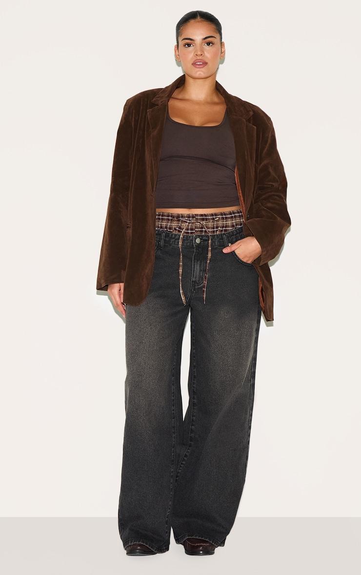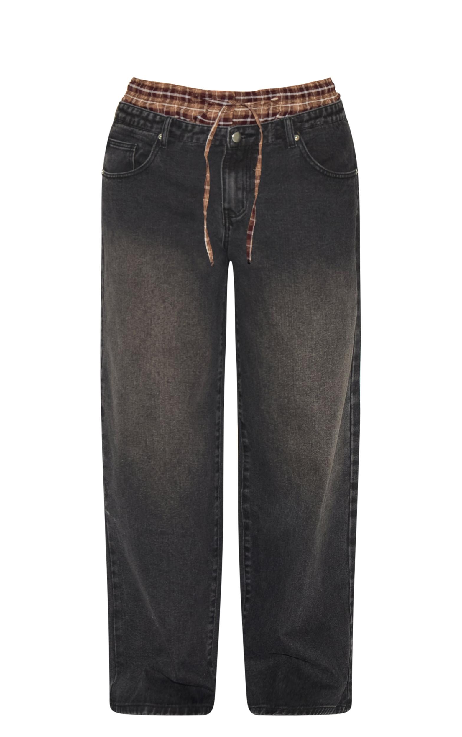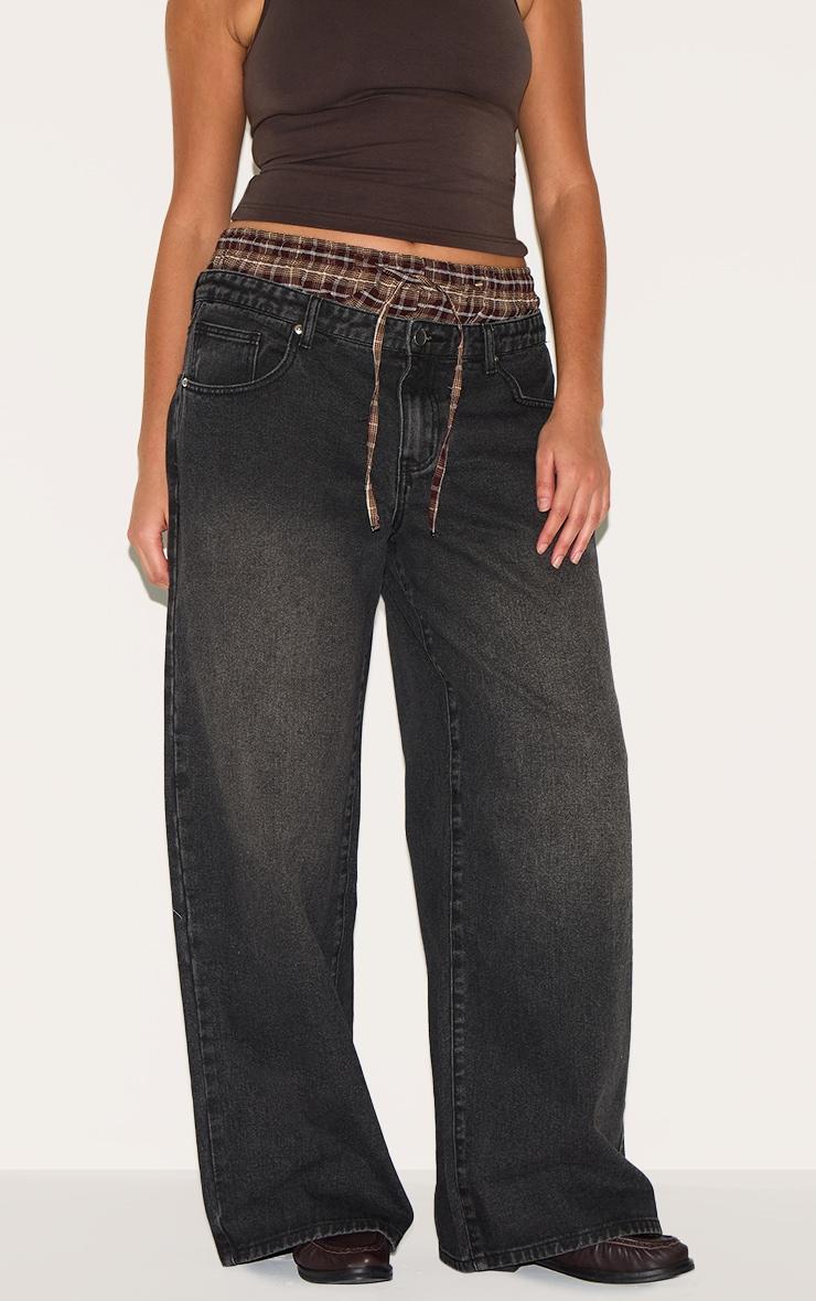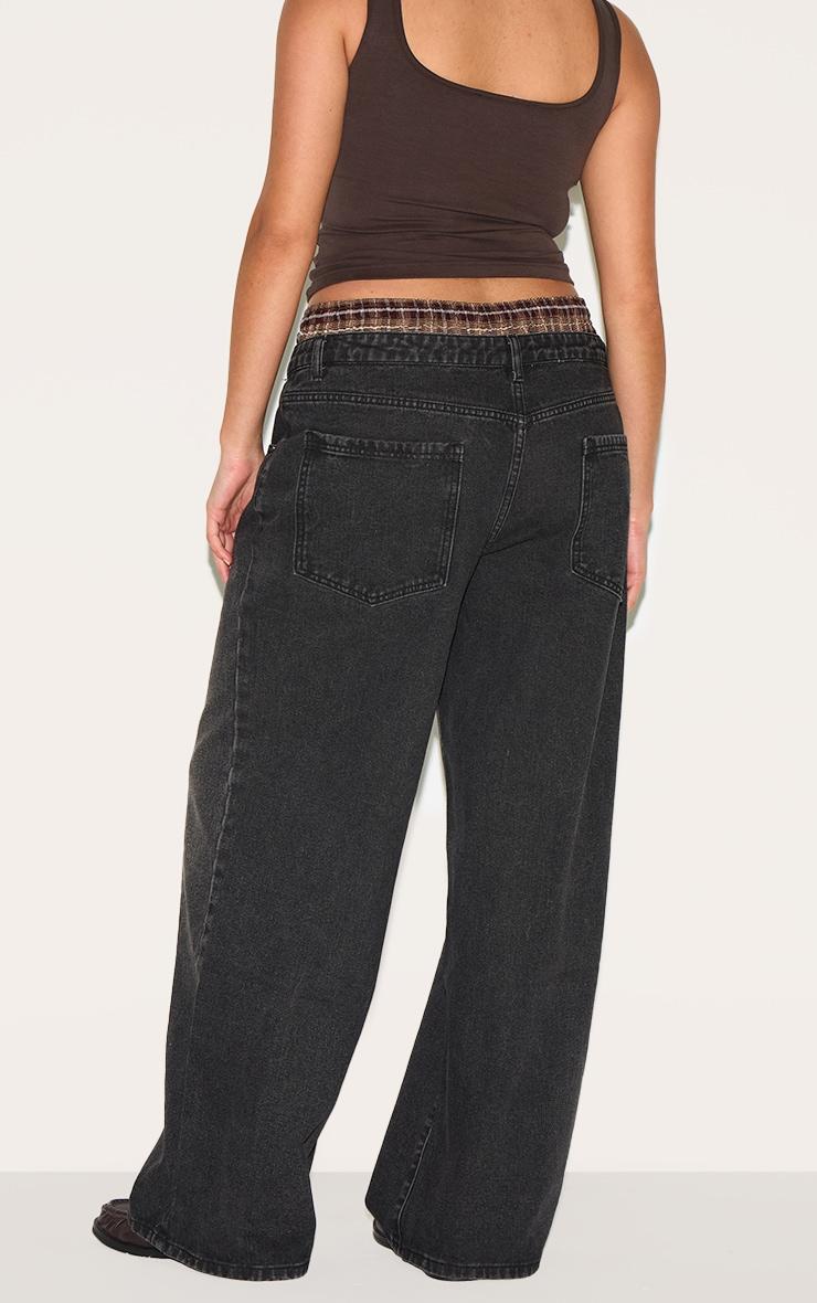 Make a statement in these plus black denim double layered boxer boyfriend jeans. Featuring a black denim material with a bold double waistband and relaxed boyfriend fit. Team with crop top and chunky loafers for edgy vibes.Length approx 81.5cm/32inch (Based on sample size US 12)Model wears size UK 16/ EU 44/ AUS 16/ US 12Model Height - 5ft 9inchp]:!mb-4inch>Brand: PrettyLittleThingCategory: DenimProduct type: Wide Leg JeansColor: BlackMaterial: Stretch DenimDesign: PrintOccasion: Day