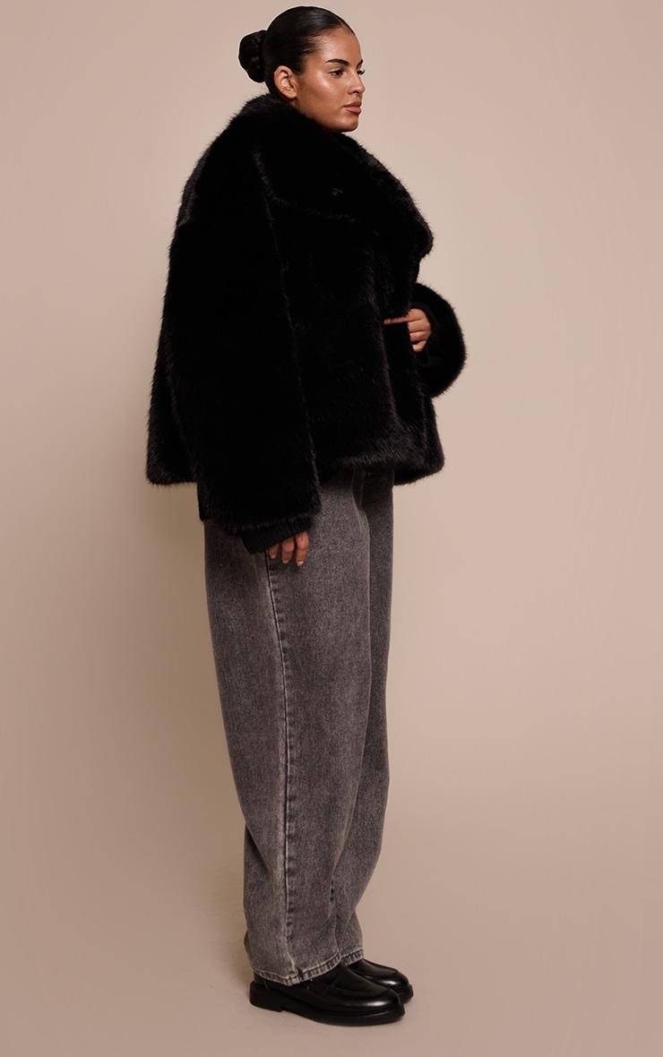 Make a knowing entrance this season with the plus black faux fur short shawl collar coat. This piece boasts a voluminous, cropped silhouette, framed by a dramatic, wide shawl collar, crafted from statement faux fur. Pair it with dark wash jeans and sleek cowboy boots for a confident day look, finishing the ensemble with bold hoops for an effortlessly distinctive appeal.Length approx 58.5cm/23inch (Based on sample size XL)Model wears size XLModel Height - 5ft 9inchp]:!mb-4inch>Category: OuterwearProduct type: Faux FurColor: BlackMaterial: Faux FurOccasion: Day