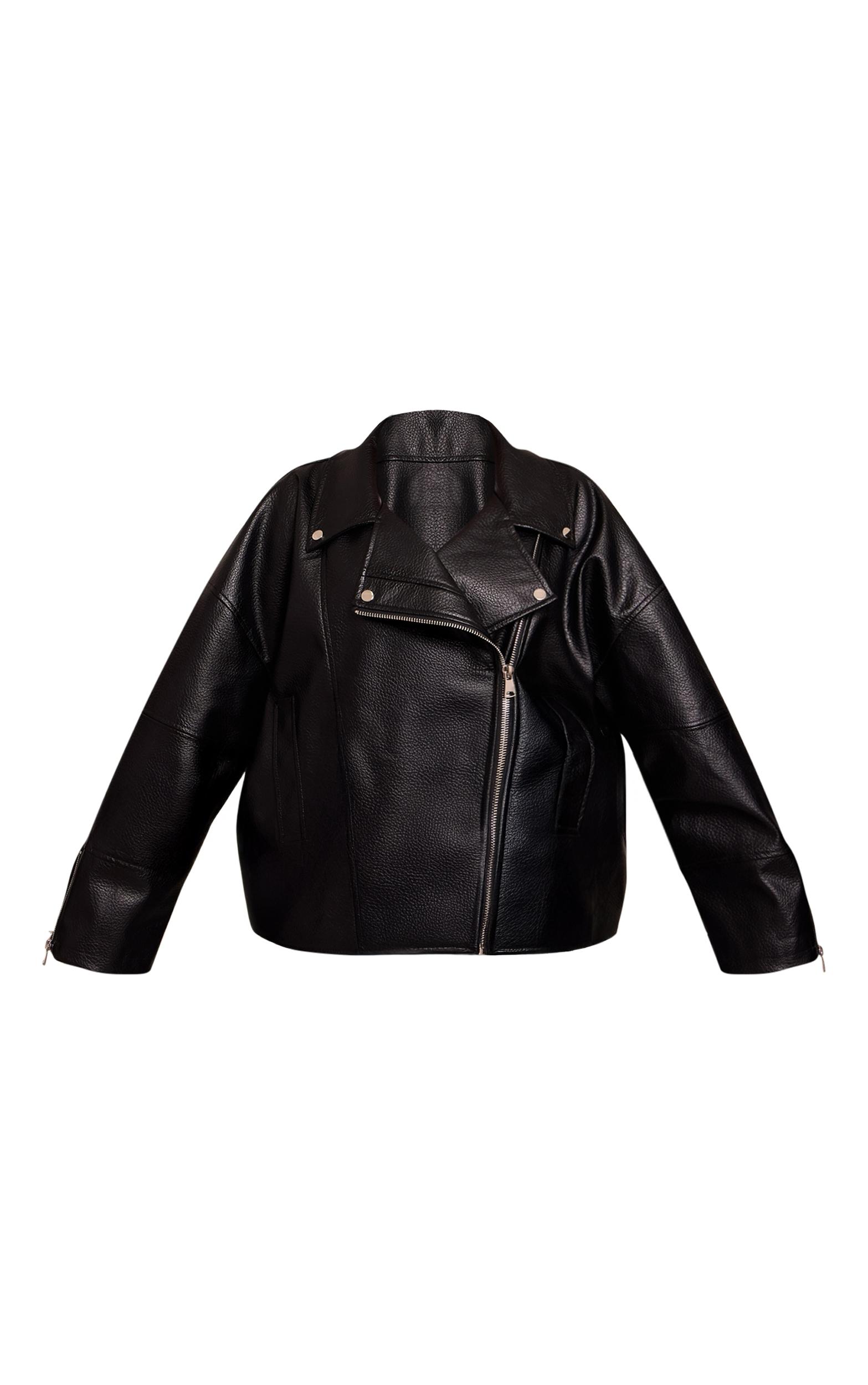 Add edge to your outerwear with the plus black faux leather oversized biker jacket. Made from smooth faux leather in classic black, this jacket features oversized lapels and silver-tone hardware for a bold finish. Layer over jeans and a tee for the ultimate cool-girl look.Length approx 58.5cm/23inch (Based on sample size XL)Model wears size XLModel Height - 5ft 9inchp]:!mb-4inch>Category: OuterwearProduct type: Biker JacketColor: BlackMaterial: Faux LeatherOccasion: Day