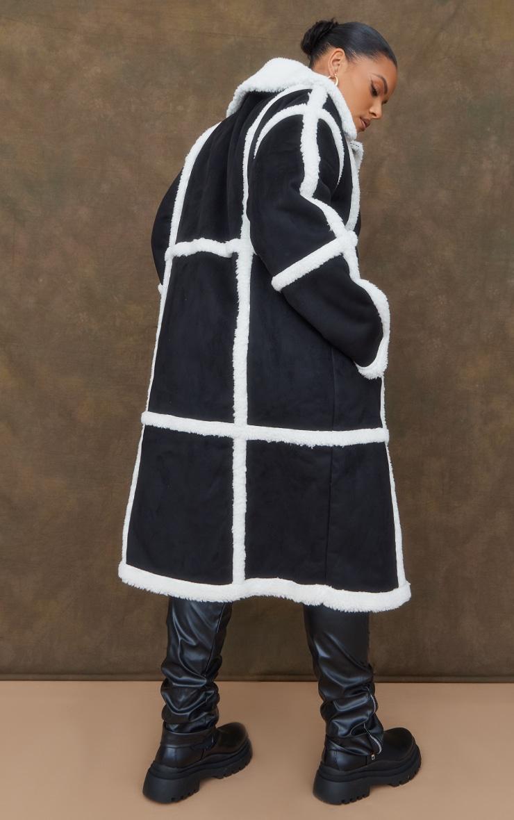 This coat is sure to make a statement. Featuring a black faux suede material with a square borg panel design and a cosy fit, we are in love. Wear with faux leather bottoms, a white tee and chunky boots to secure the vibe. Length approx 132cm/52inch (Based on a sample size UK 16) Model wears size UK 16/ EU 44/ AUS 16/ US 12Model Height - 5ft 6inchp]:!mb-0inch>Category: OuterwearProduct type: TeddyColor: BlackMaterial: Faux SuedeDesign: PlainOccasion: Day