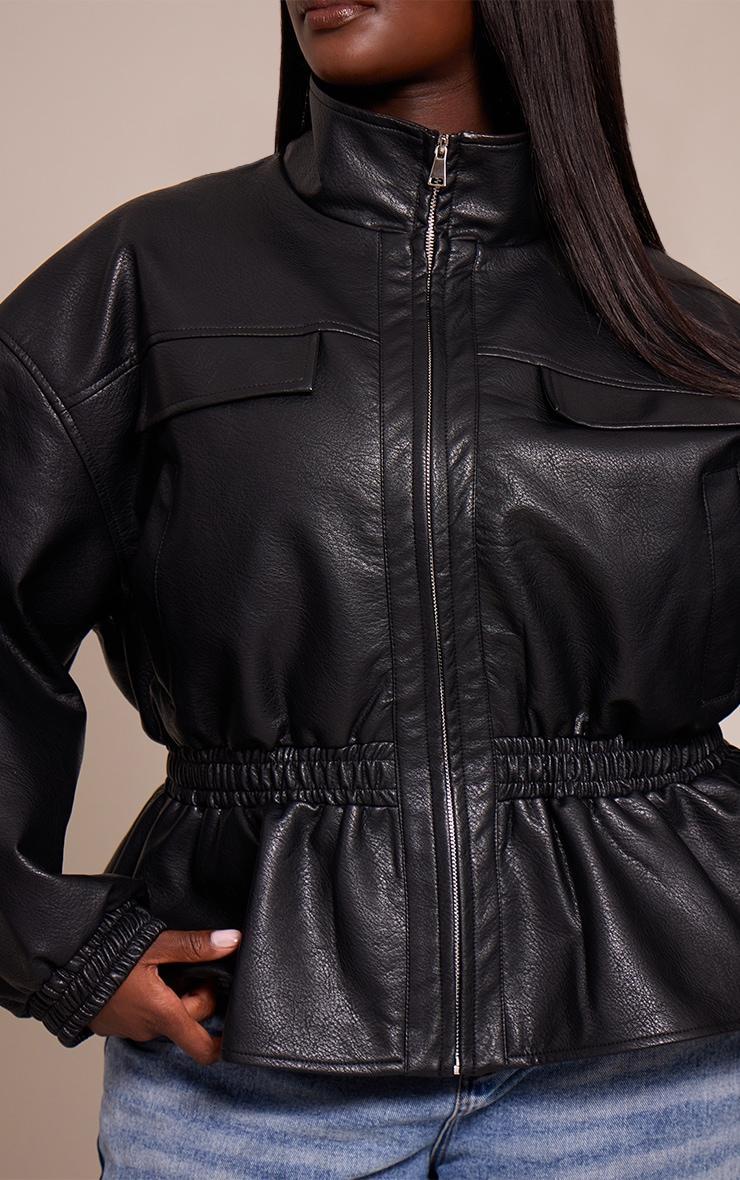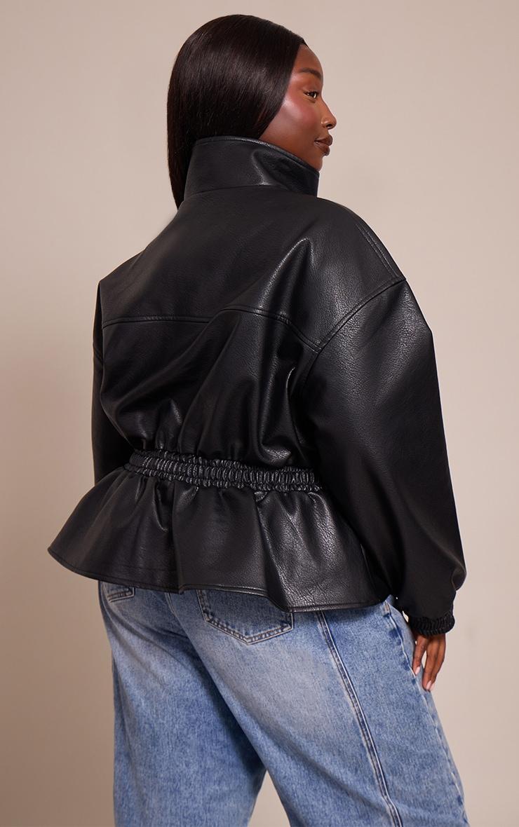 Transform any look with the perfect blend of structure and style. The plus black high neck cinched waist faux leather jacket delivers a confident edge, designed with a sleek high neck and full zip fastening, while a statement cinched waist creates a dynamic peplum shape. Utility-inspired flap pockets and neat elasticated cuffs complete its artful construction. Team it with wide-leg pants and a crisp white shirt for a polished daytime vibe, grounded perfectly with sleek boots and a hint of gold jewelry for an effortlessly put-together finish.Length approx 58.5cm/23inch (Based on sample size XL)Model wears size XLModel Height - 5ft 9inchp]:!mb-4inch>Category: OuterwearProduct type: JacketColor: BlackMaterial: Faux LeatherOccasion: Day