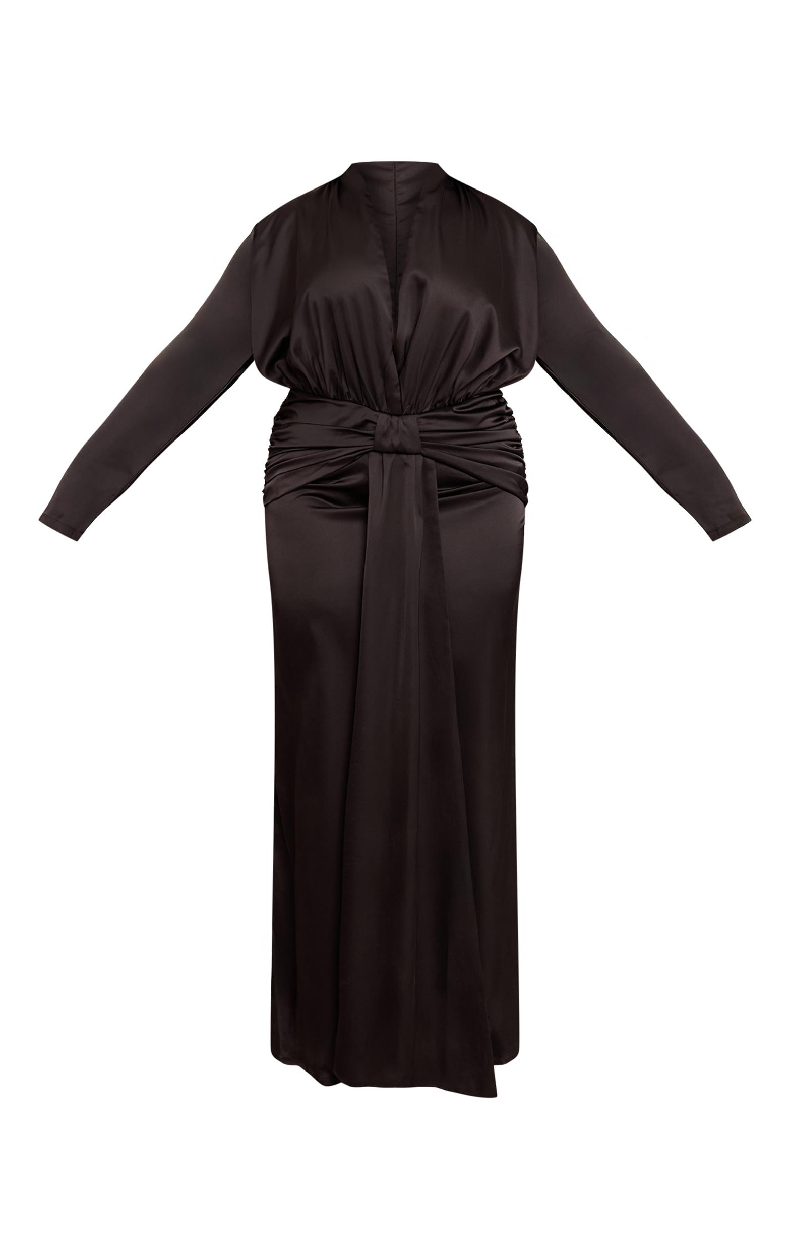 Step out in confident style with the plus black satin twist drape front maxi dress. This black maxi features a deep V-neckline and an artful twisted front drape. It's perfect for those upscale evening invites or a memorable dinner. Finish your outfit with classic black heels and a chic black bag.Length approx 155cm/61inch (Based on sample size US 12)Model wears size UK 16/ EU 44/ AUS 16/ US 12Model Height - 5ft 9inchp]:!mb-4inch>Brand: PrettyLittleThingCategory: DressesProduct type: Bodycon DressColor: BlackMaterial: MeshDesign: PlainNeckline: BardotSleeves: LongOccasion: Evening