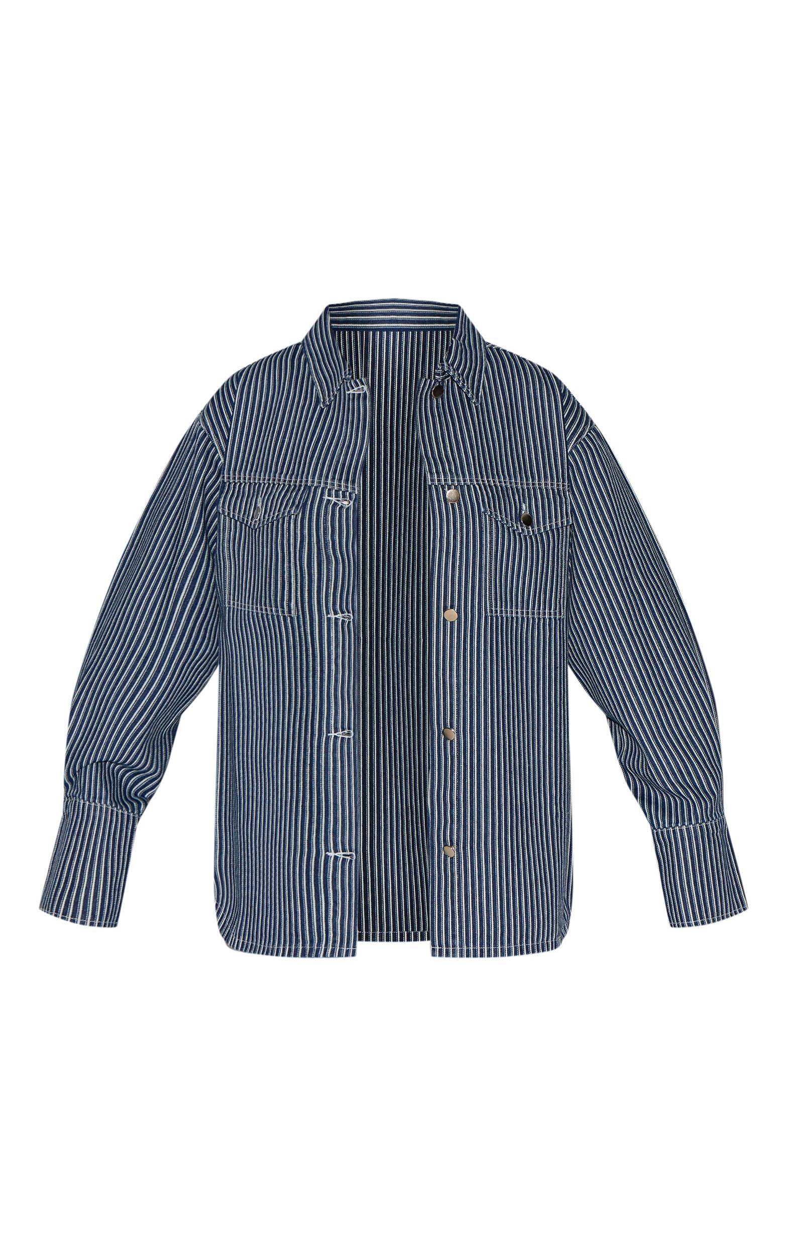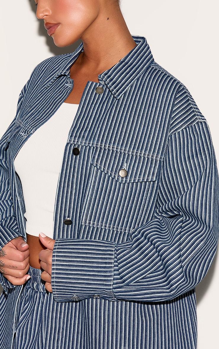 Tailored from a blue pinstripe denim, this jacket features a structured collar, double pocket detailing and a boxy oversized fit. Keep it sleek by styling the plus blue pinstripe denim jacket with the matching pants, a simplistic white cropped tee, statement sunglasses and your favorite flats.Length approx 72.5cm/28.5inch (Based on sample size US 12)Model wears size UK 16/ EU 44/ AUS 16/ US 12Model Height - 5ft 7inchp]:!mb-4inch>Brand: PrettyLittleThingCategory: DenimProduct type: Denim JacketColor: BlueMaterial: Rigid DenimDesign: PlainSleeves: LongOccasion: Day