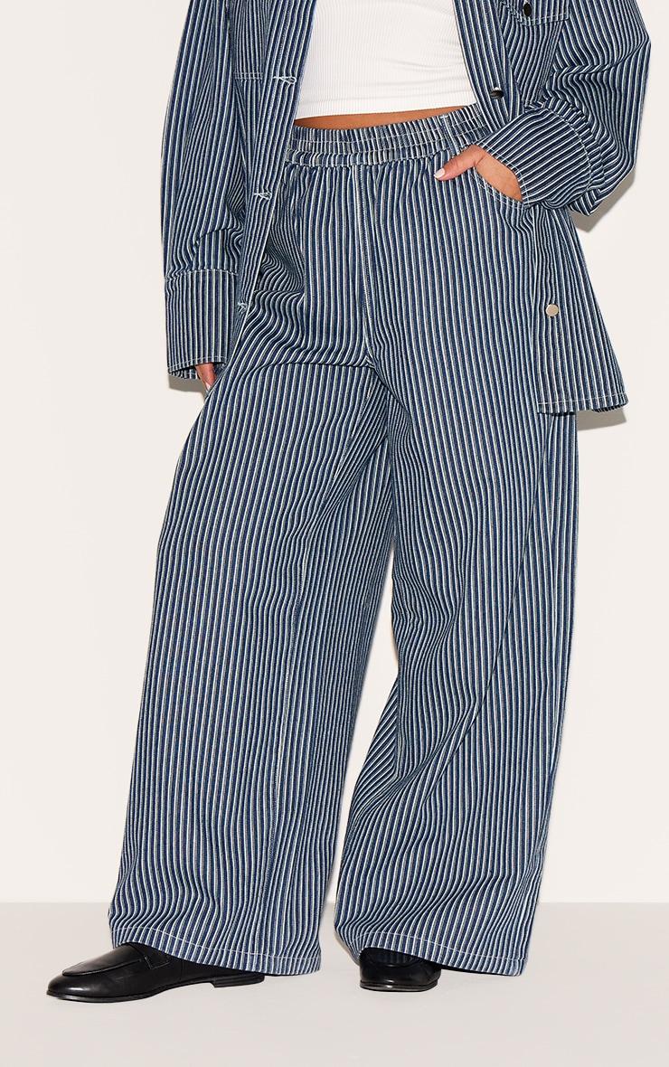 Designed for comfort and style, these jeans feature blue pinstripe material with an elasticated waist and a versatile wide leg fit. Complete the look by pairing these plus blue pinstripe elasticated waist jeans with the matching jacket, a white cropped cami, sleek shoulder bag and fashion-forward sunglasses.Length approx 90cm/35.5inch (Based on sample size US 12)Model wears size UK 16/ EU 44/ AUS 16/ US 12Model Height - 5ft 7inchp]:!mb-4inch>Brand: PrettyLittleThingCategory: DenimProduct type: Straight Leg JeansColor: BlueMaterial: Rigid DenimDesign: PlainOccasion: Day