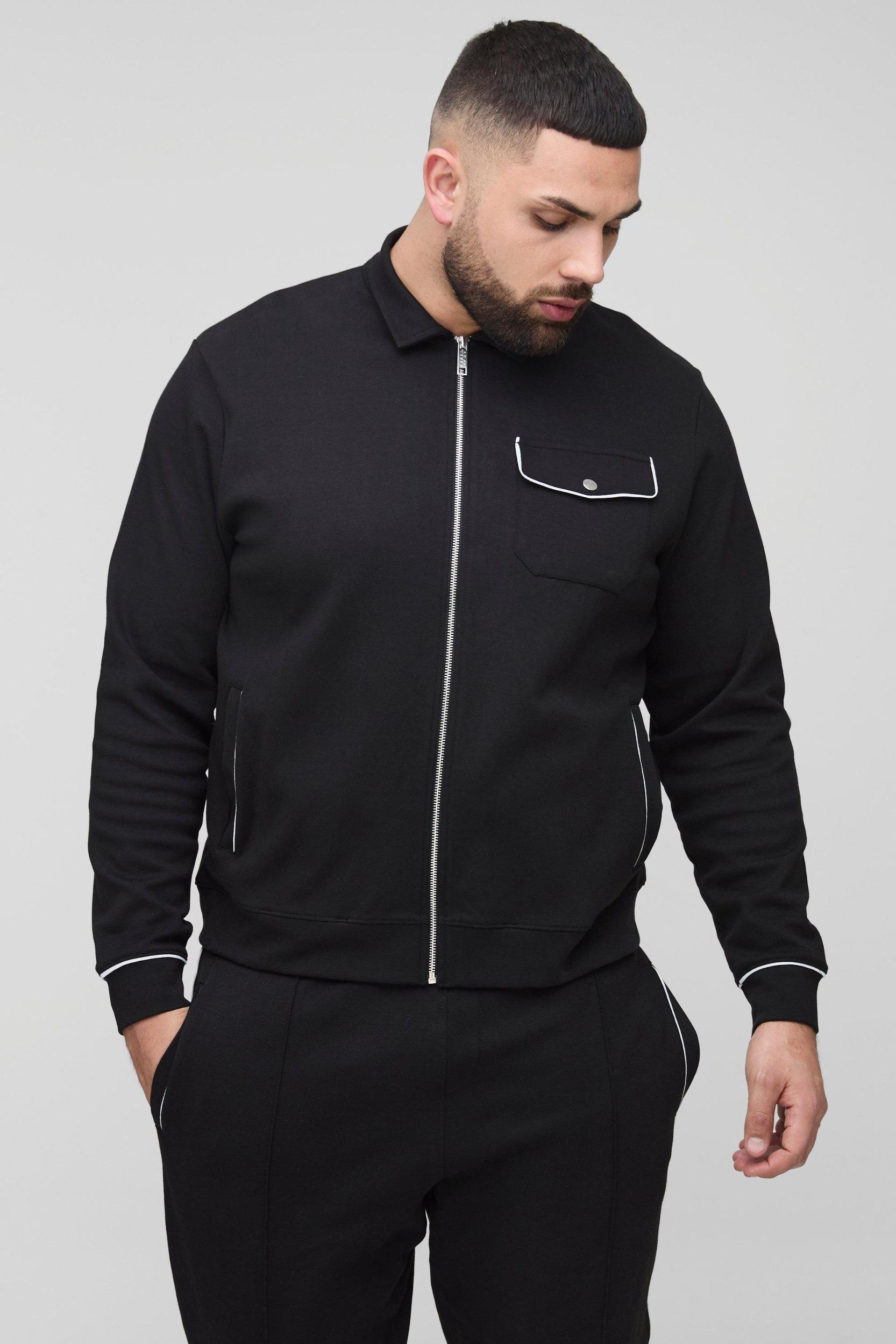 Plus Boxy Harrington and Slim Sweatpants Interlock Set | boohooMAN USA