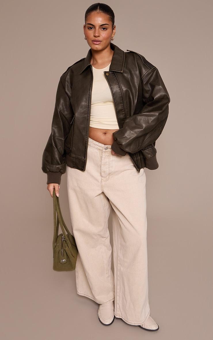 Look all kinds of chic in this plus brown washed faux leather pocket detail bomber jacket. Brought to you in a brown faux leather material with a pocket detail, this bomber jacket is calling your name. Style with a white tee, snake print pants and your fave heels for a finish we can't get enough of this season. Length approx 58cm/23inch (Based on a sample size UK 16) Model wears size UK 16/ EU 44/ AUS 16/ US 12Model Height - 5ft 6inchp]:!mb-0inch>Category: OuterwearProduct type: BomberColor: BrownMaterial: Faux LeatherDesign: PlainSleeves: LongOccasion: Day