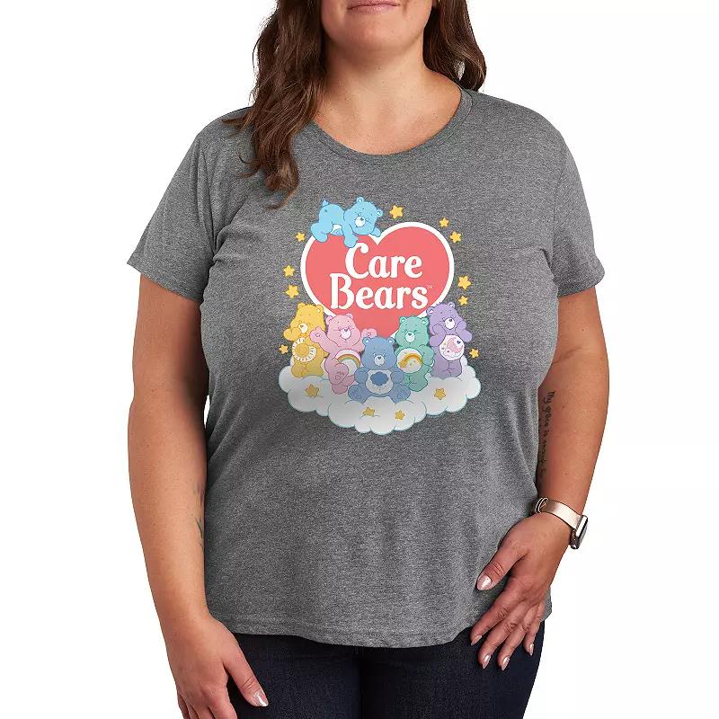 Plus Care Bears Pastel Cloud Group Graphic Tee, Womens Grey Gray