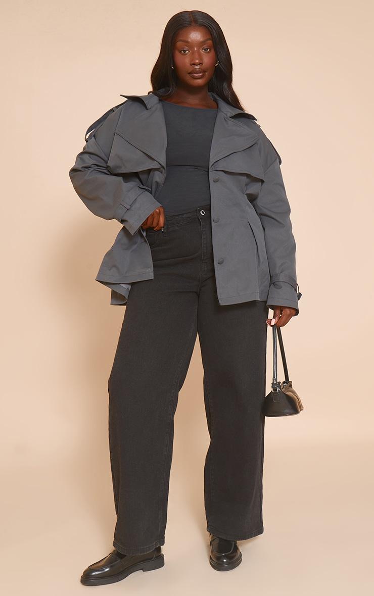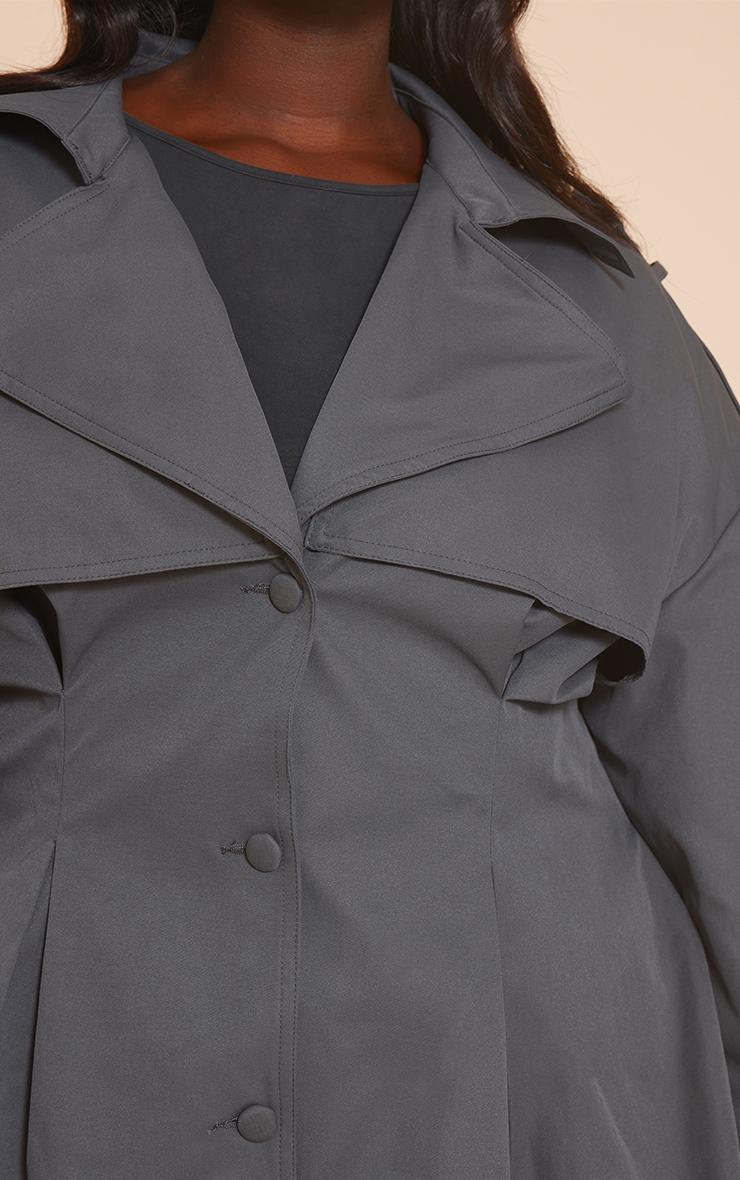 Your outerwear just got an upgrade. This plus charcoal cropped belted trench coat offers a fresh spin on a classic, featuring a distinctive cropped cut and wide, sharp lapels. The design includes unique shoulder detailing and a cinched waist with pleats that create a defined shape. Finished with a front button fastening and cuff straps, this piece is made for modern styling. Pair it with high-waisted wide-leg pants and a simple top for an effortlessly cool day look that makes a statement.Length approx 58.5cm/23inch (Based on sample size US 12)Model wears size UK 16/ EU 44/ AUS 16/ US 12Model Height - 5ft 9inchp]:!mb-4inch>Brand: PrettyLittleThingCategory: OuterwearProduct type: TrenchColor: CharcoalMaterial: Faux LeatherNeckline: ShirtSleeves: LongOccasion: Day