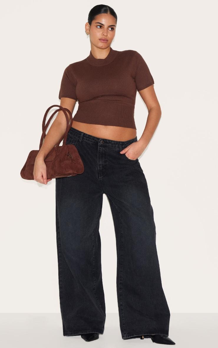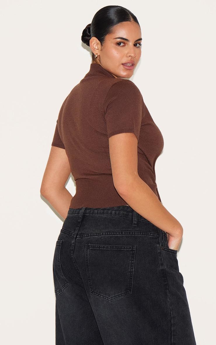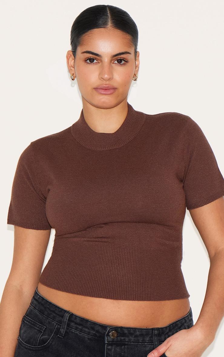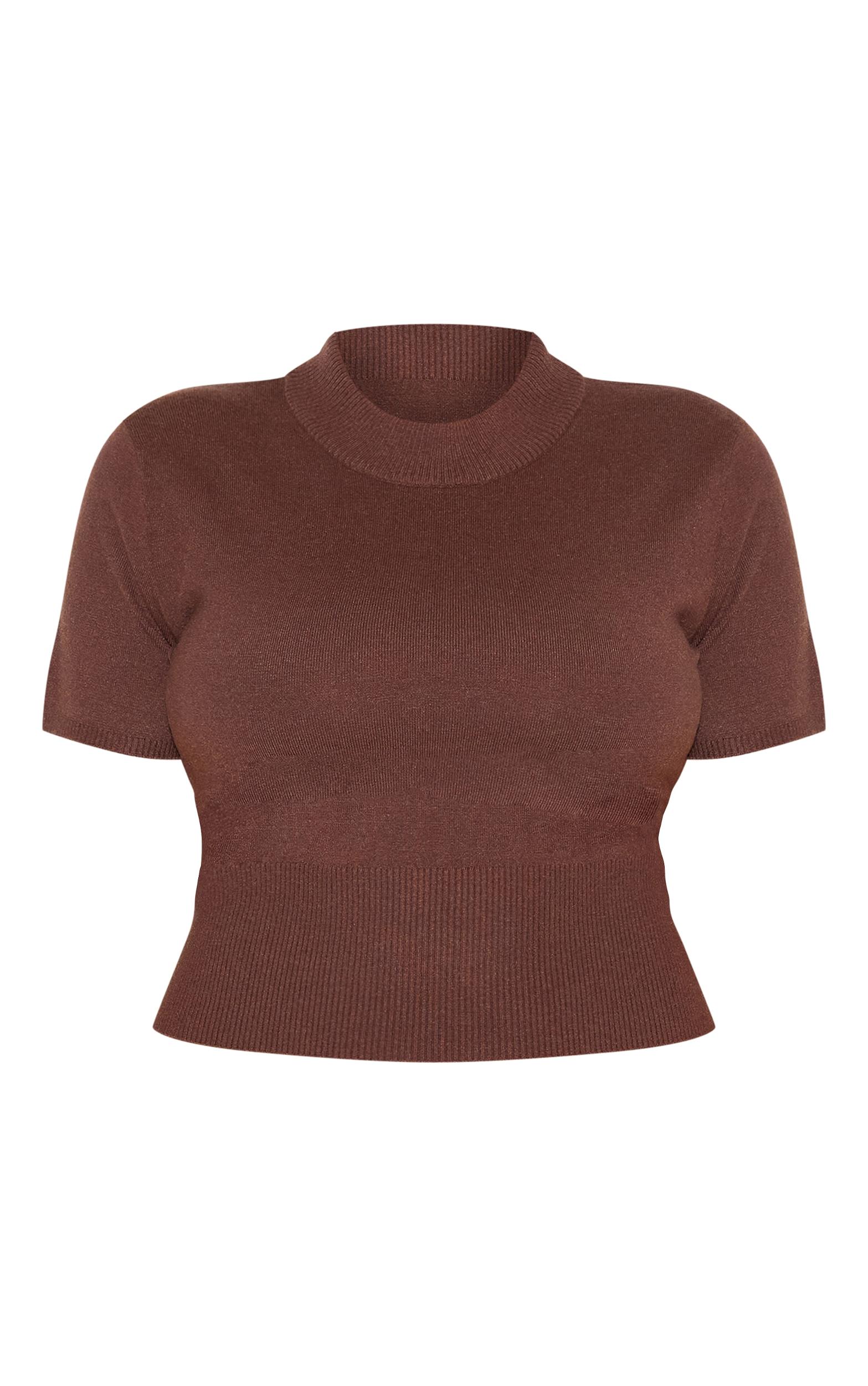 This essential knit t-shirt in a rich chocolate hue offers a foundational piece for the discerning wardrobe. The close knit construction provides a refined texture and a flattering silhouette. A versatile layering piece, consider styling it with tailored pants from our collection for an elevated everyday aesthetic. Length approx 58cm/23inch (Based on a sample size XL) Model wears size XlModel Height - 5ft 9inchp]:!mb-4inch>Brand: PrettyLittleThingCategory: KnitwearProduct type: T-ShirtColor: ChocolateMaterial: KnitNeckline: CrewSleeves: Short