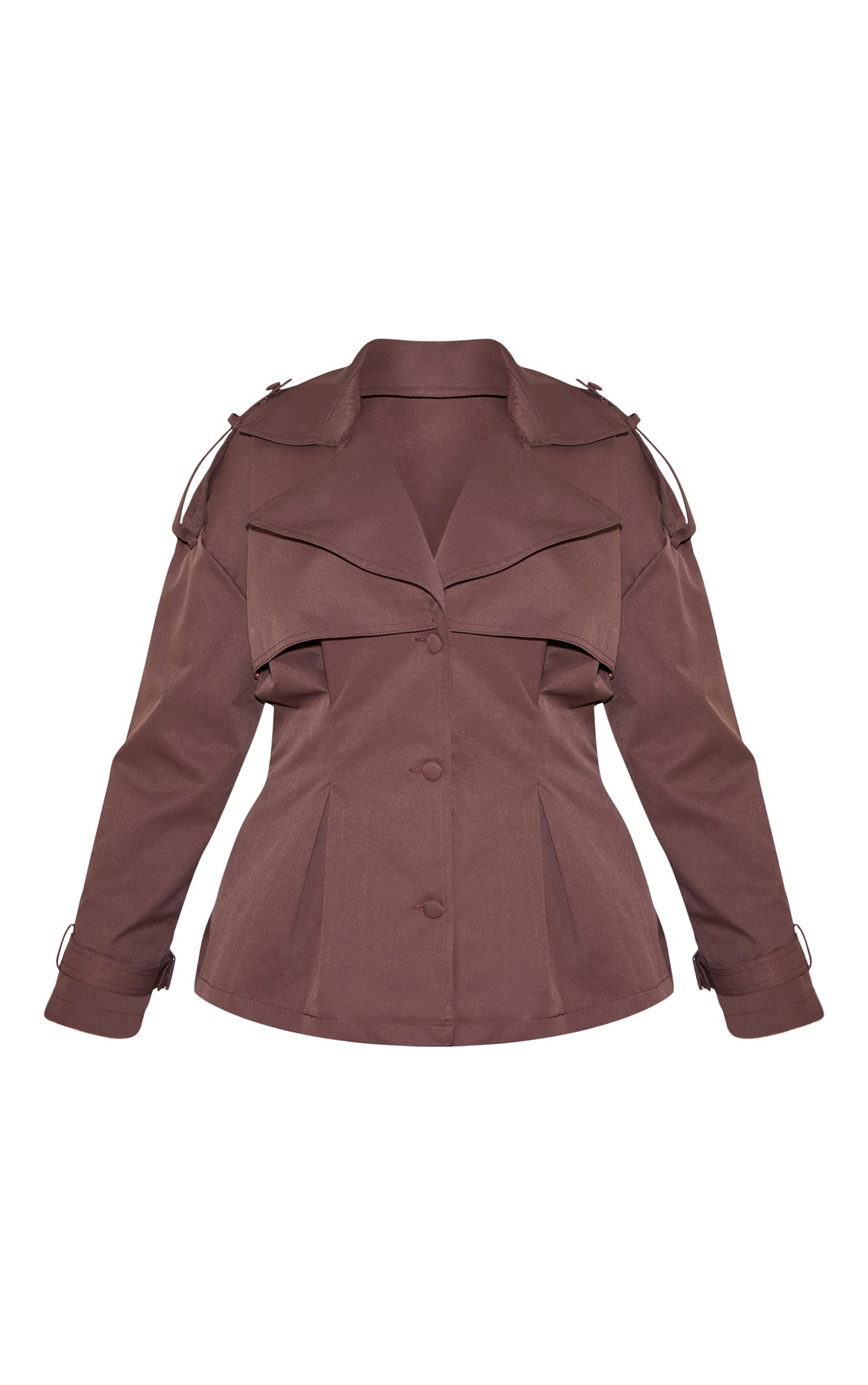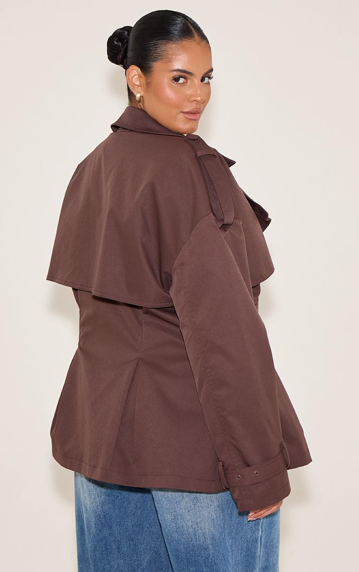 Command attention with a contemporary twist on a timeless staple. The plus chocolate plum cropped belted trench coat introduces a refined shorter length to the classic trench silhouette, detailed with sharp, oversized lapels and distinctive storm flaps that exude confidence. Its artfully cinched waist, enhanced by subtle pleating below, creates a flattering shape, while structured shoulder epaulettes and buckled cuff straps add authentic trench elements. For an assured daytime look, throw it over a crisp white tee and relaxed wide-leg jeans, finishing with chunky sneakers. Alternatively, style with tailored pants and a high-neck sweater for an effortlessly polished ensemble that owns the room.Length approx 58.5cm/23inch (Based on sample size US 12)Model wears size UK 16/ EU 44/ AUS 16/ US 12Model Height - 5ft 9inchp]:!mb-4inch>Brand: PrettyLittleThingCategory: OuterwearProduct type: TrenchColor: Chocolate PlumMaterial: Faux LeatherNeckline: ShirtSleeves: LongOccasion: Day