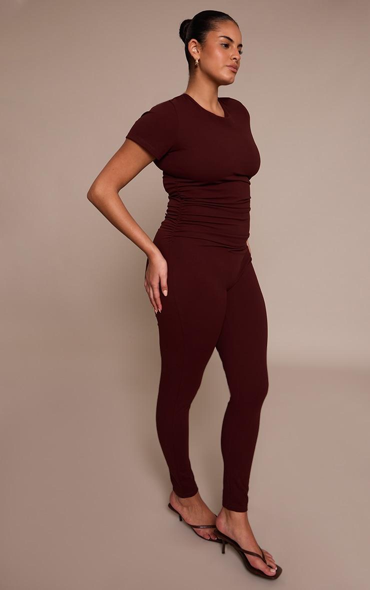 Define your everyday elevation with a piece that works as hard as you do. This plus chocolate sculpt ruched side jumpsuit is engineered for an impeccable fit, featuring a classic round neckline and short sleeves that seamlessly lead into artful ruched detailing at the side, subtly contouring the waistline. The streamlined, slim-leg pants ensure a polished finish from top to bottom. Ready for any occasion, elevate this sophisticated one-piece with sleek nude heels and a stack of gold cuff bracelets for a considered, confident look.Length approx 155cm/61inch (Based on sample size US 12)Model wears size UK 16/ EU 44/ AUS 16/ US 12Model Height - 5ft 9inchp]:!mb-4inch>Brand: PrettyLittleThingCategory: DressesProduct type: Skinny JumpsuitColor: ChocolateMaterial: Faux LinenDesign: PrintNeckline: PlungeSleeves: Spaghetti StrapOccasion: Occasion