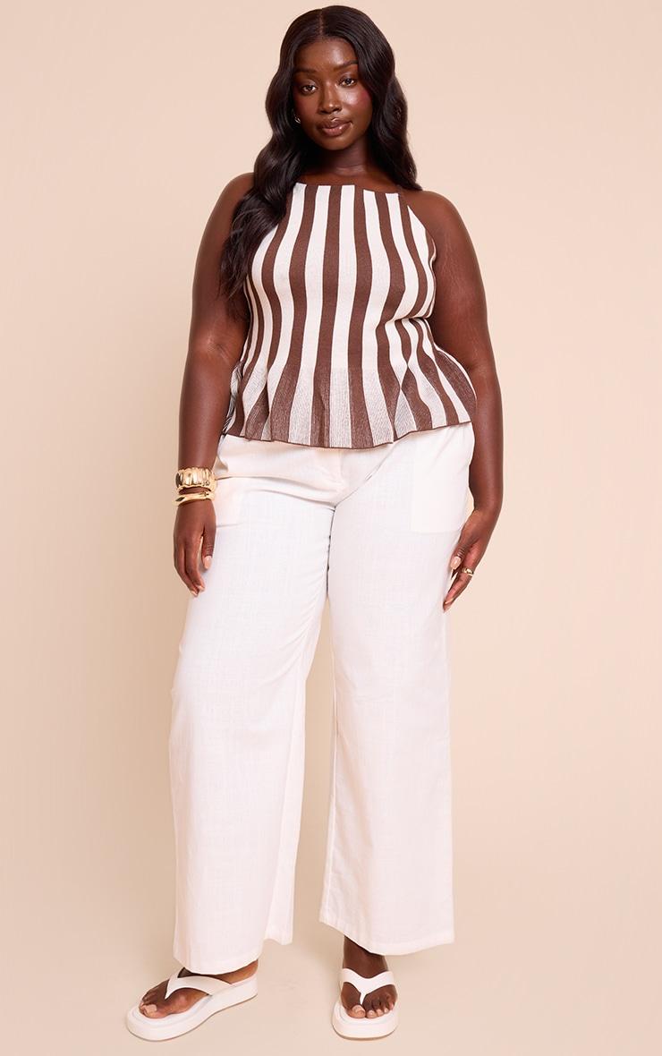 Elevate your wardrobe with the plus chocolate stripe peplum cami top, a flattering and stylish choice. Made from fabric featuring chocolate-Colored stripes with a peplum hem that enhances your shape. This cami top pairs beautifully with pants or skirts for day or evening wear. Style with heels and statement Jewelry to complete the look.Length approx 58.5cm/23inch (Based on sample size XL)Model wears size UK 16/ EU 44/ AUS 16/ US 12Model Height - 5ft 9inchp]:!mb-4inch>Brand: PrettyLittleThingCategory: KnitwearProduct type: Cami TopColor: ChocolateMaterial: Brushed KnitDesign: PrintNeckline: ScoopSleeves: Spaghetti StrapOccasion: Day