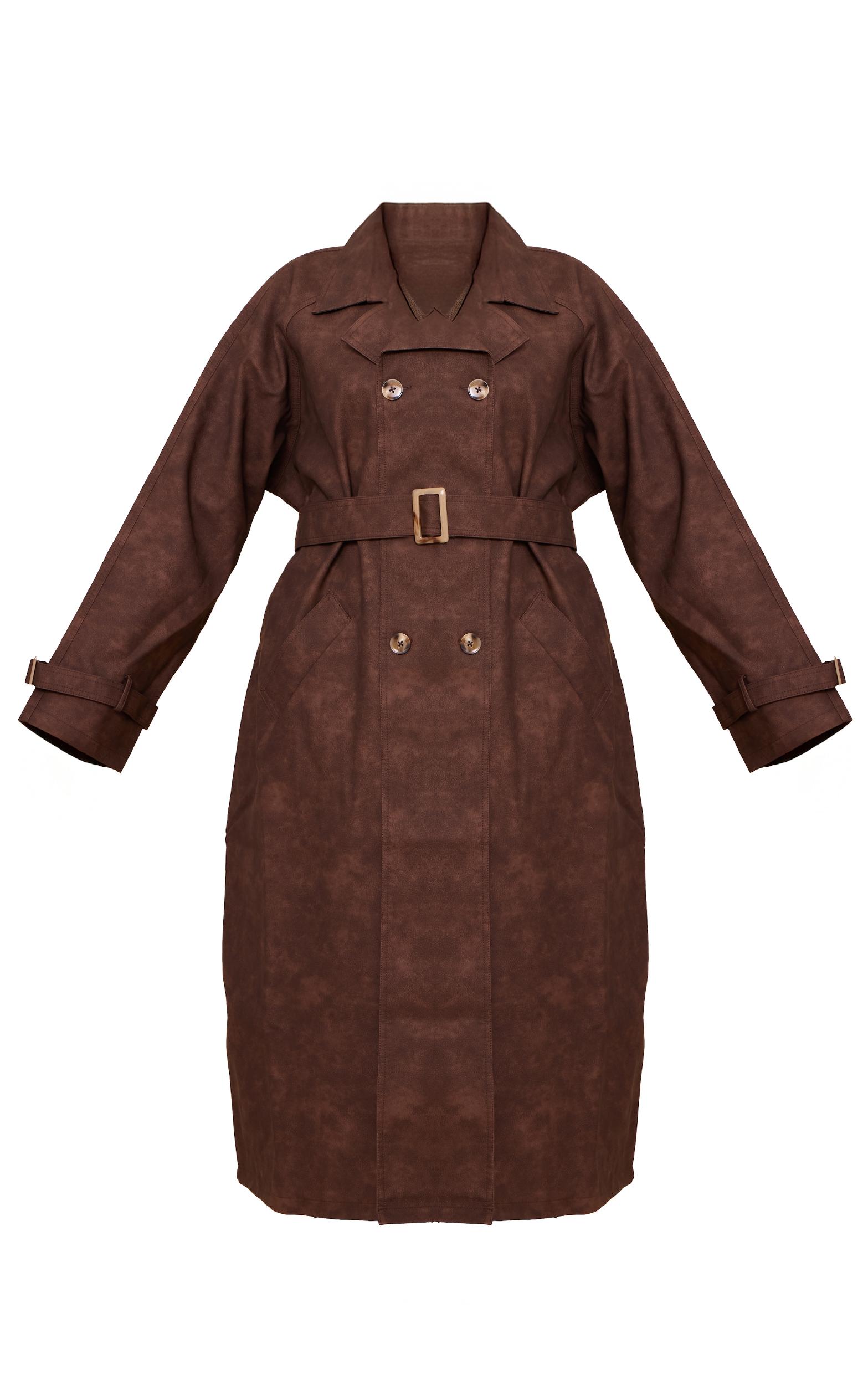 The plus chocolate textured faux leather trench coat mixes edges with elegance, featuring a soft faux leather finish and structured silhouette. The deep chocolate shade ensures it remains versatile and stylish. Layer it over dresses or pants-and-blouse combos and complete with ballet flats for polished outerwear.Length approx 139.5cm/55inch (Based on sample size US 12)Model wears size UK 16/ EU 44/ AUS 16/ US 12Model Height - 5ft 9inchp]:!mb-4inch>Category: OuterwearProduct type: TrenchColor: ChocolateMaterial: Faux LeatherNeckline: V NeckSleeves: LongOccasion: Day