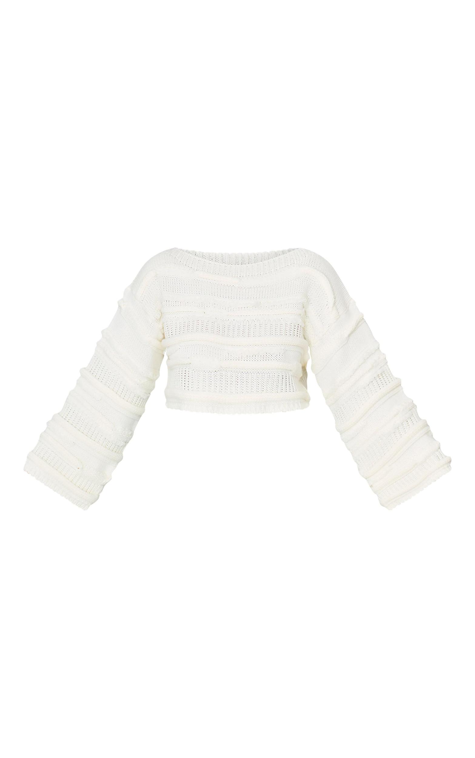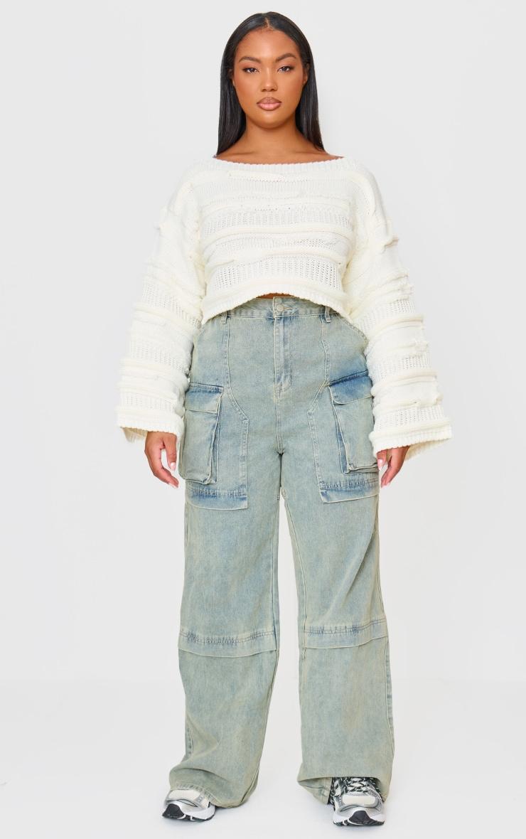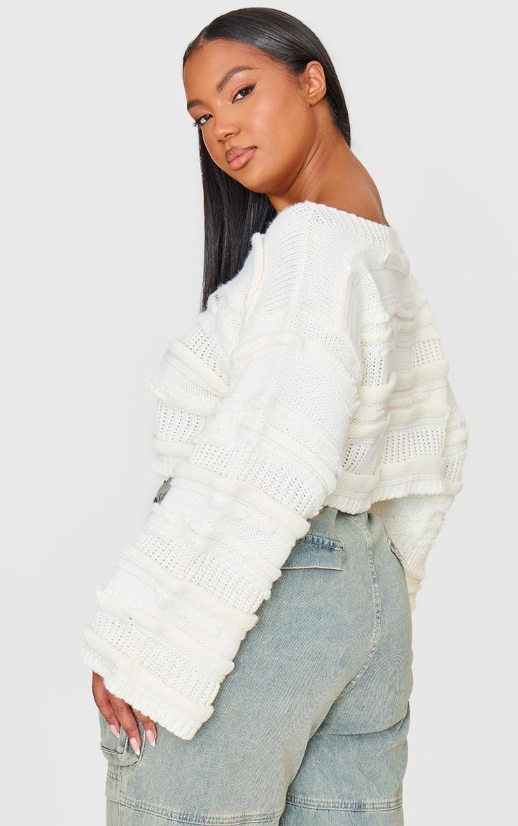 Bag this plus cream chunky raised contrast knit cropped wide neck sweater for a look you won't regret. Brought to you in a neutral cream shade, with a cosy chunky knit material, with an edgy raised contrast design and wide neck fit for a comfortable finish, what's not to love? Style with a pair of jeans and simple accessories to complete the look. Length approx 55cm/21.5inch (Based on a sample size XL) Model wears size XLModel Height - 5ft 6inchp]:!mb-0inch>Category: KnitwearProduct type: SweaterColor: CreamMaterial: KnitOccasion: Day