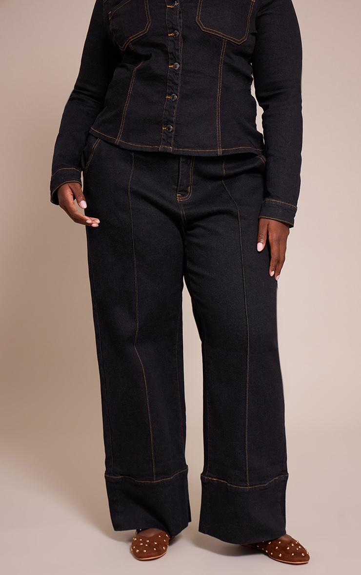 Make the denim two piece set your uniform for after-dark with the plus dark indigo turn up detail jean. This essential piece offers a flattering wide-leg cut, elevated by sharp tan contrast stitching that outlines the modern front seam and chic turn-up hem. Pair these dark indigo jeans with the matching denim shirt for a cohesive aesthetic, or opt for a sheer blouse for a sophisticated contrast, then ground your look with a pair of sharp ankle boots and complete the ensemble with a bold gold ring for an understated yet confident finish. It's the ultimate evening look that effortlessly blends attitude with polish.Length approx 86.5cm/34inch (Based on sample size US 12)Model wears size UK 16/ EU 44/ AUS 16/ US 12Model Height - 5ft 9inchp]:!mb-4inch>Brand: PrettyLittleThingCategory: DenimProduct type: Straight Leg JeansColor: Dark IndigoMaterial: Rigid DenimDesign: PlainOccasion: Evening