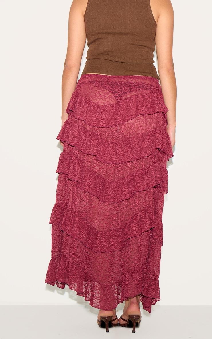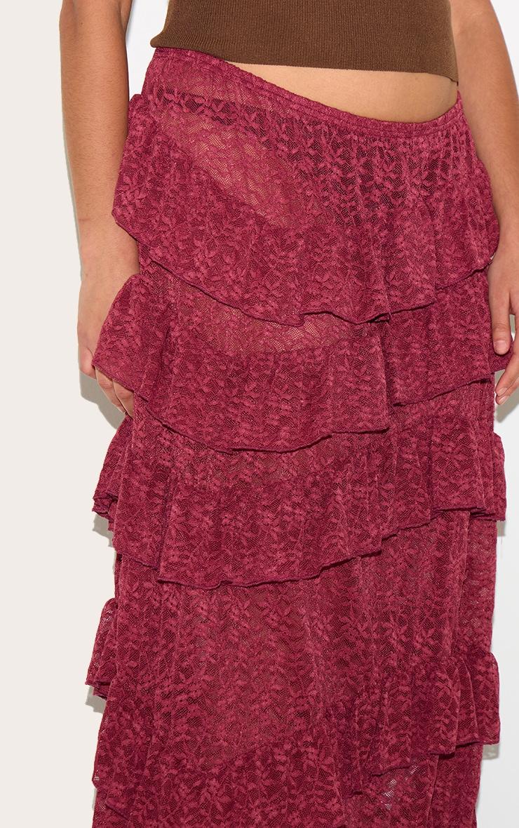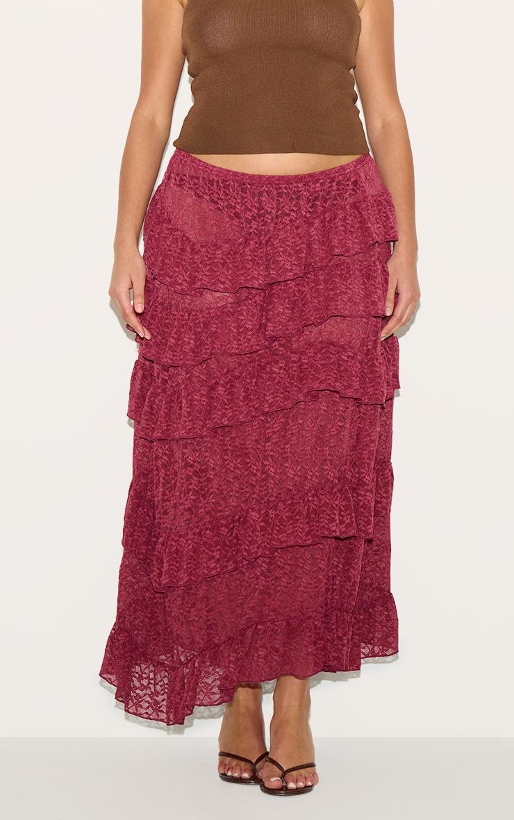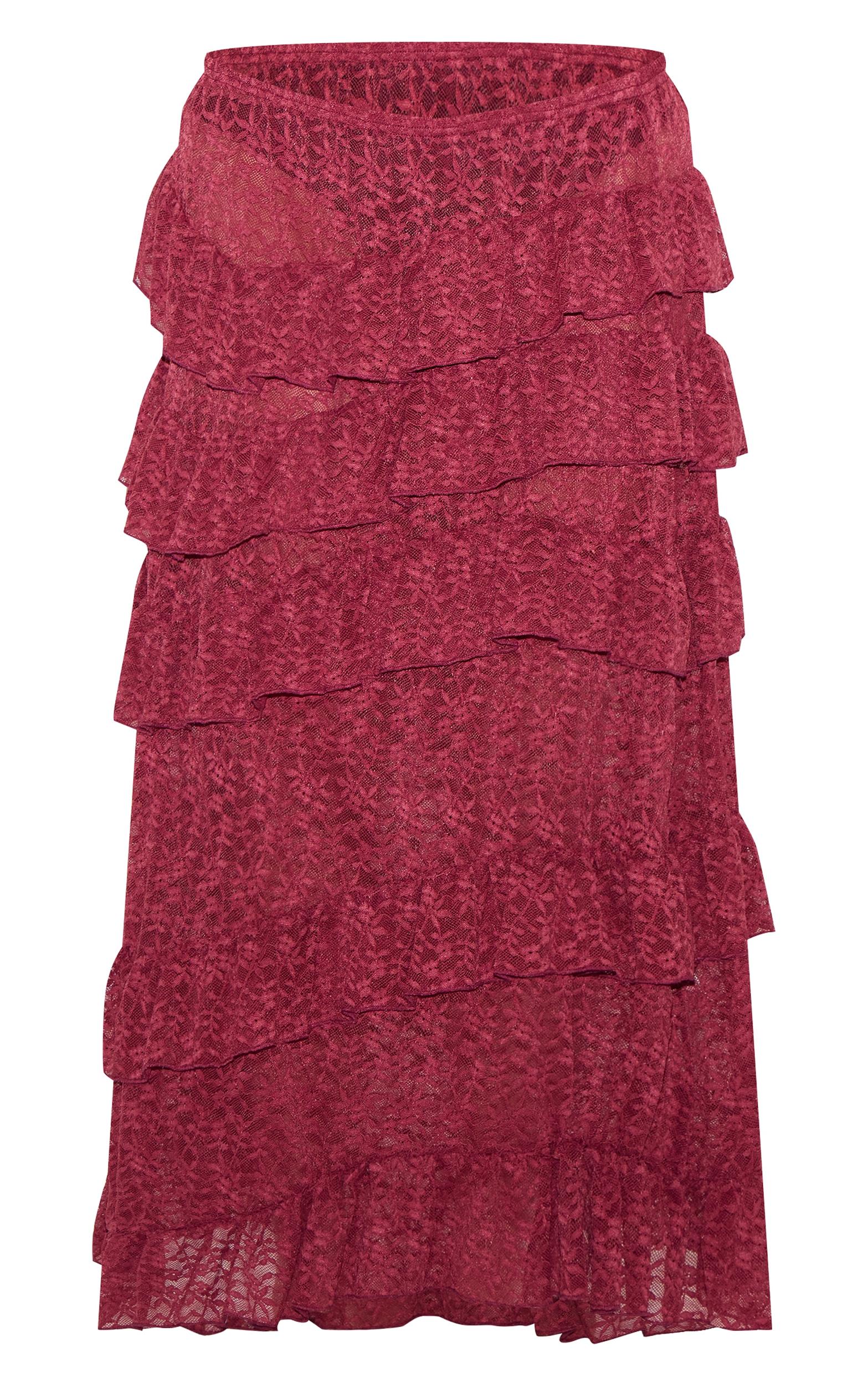Take any outfit to new heights with this plus dark plum premium lace tiered floaty maxi skirt. Made from a dark plum premium lace material with a tiered floaty design and a statement maxi length. Pair effortlessly with a tank top and heels to finish the look.Length approx 108cm/42.5inch (Based on sample size US 12)Model wears size UK 16/ EU 44/ AUS 16/ US 12Model Height - 5ft 9inchp]:!mb-4inch>Brand: PrettyLittleThingCategory: BottomsProduct type: Maxi SkirtColor: Dark PlumMaterial: Woven LaceDesign: PlainOccasion: Evening