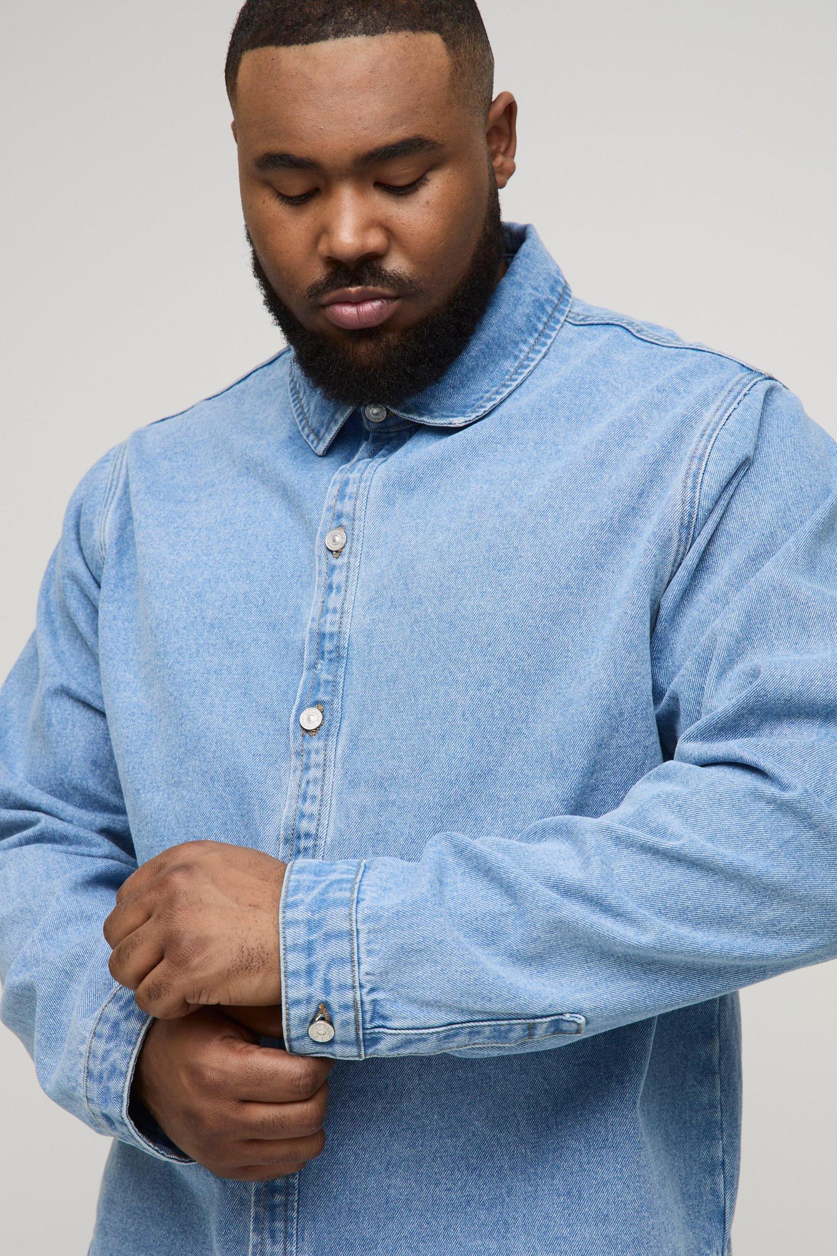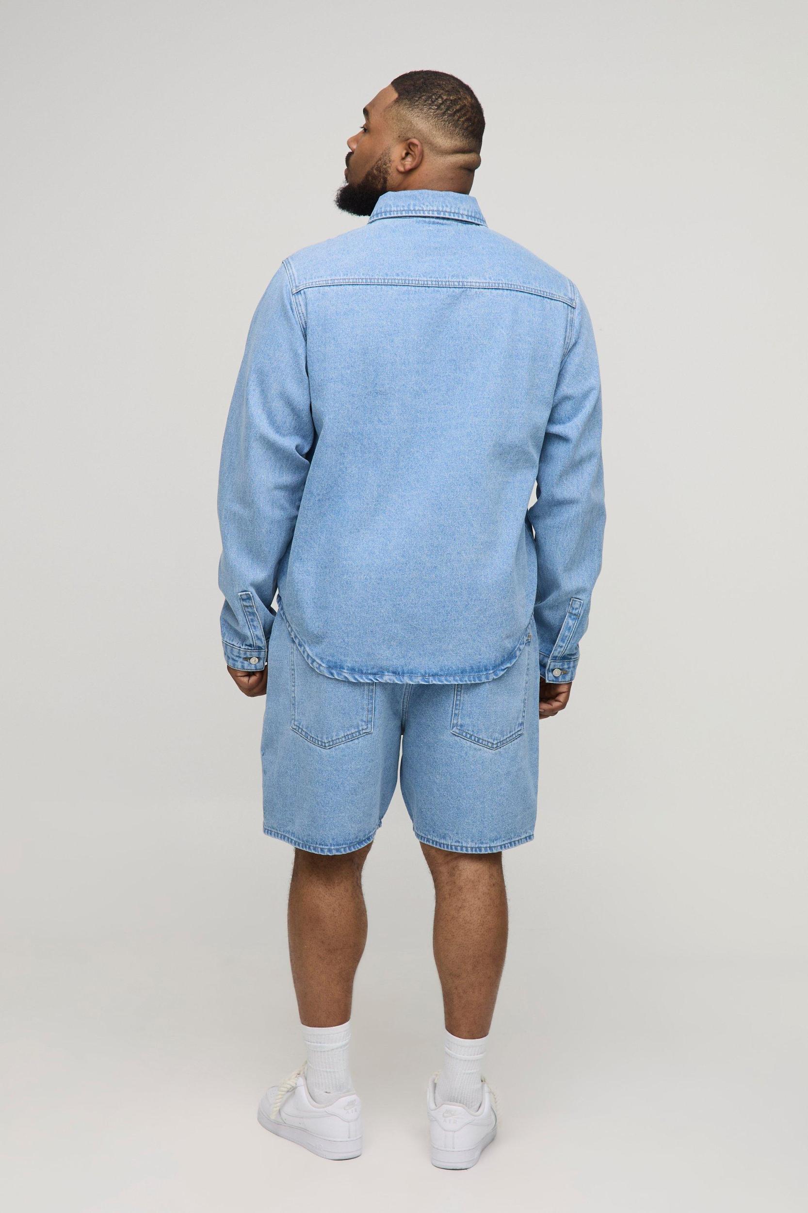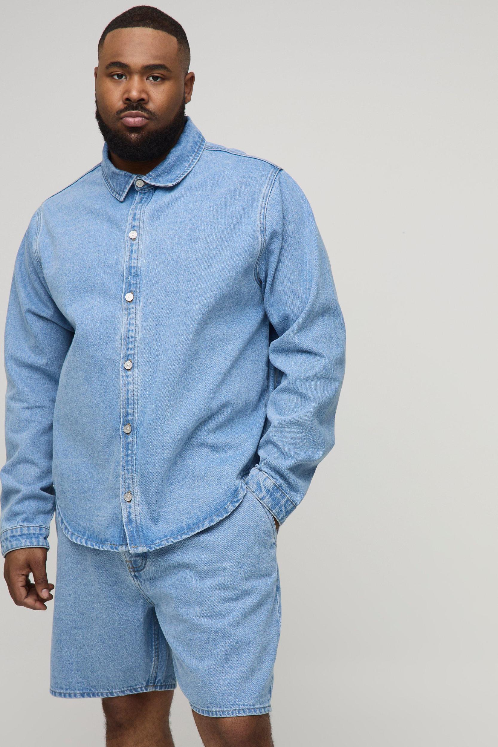 Plus Denim Shirt & Jort Set | boohooMAN USA