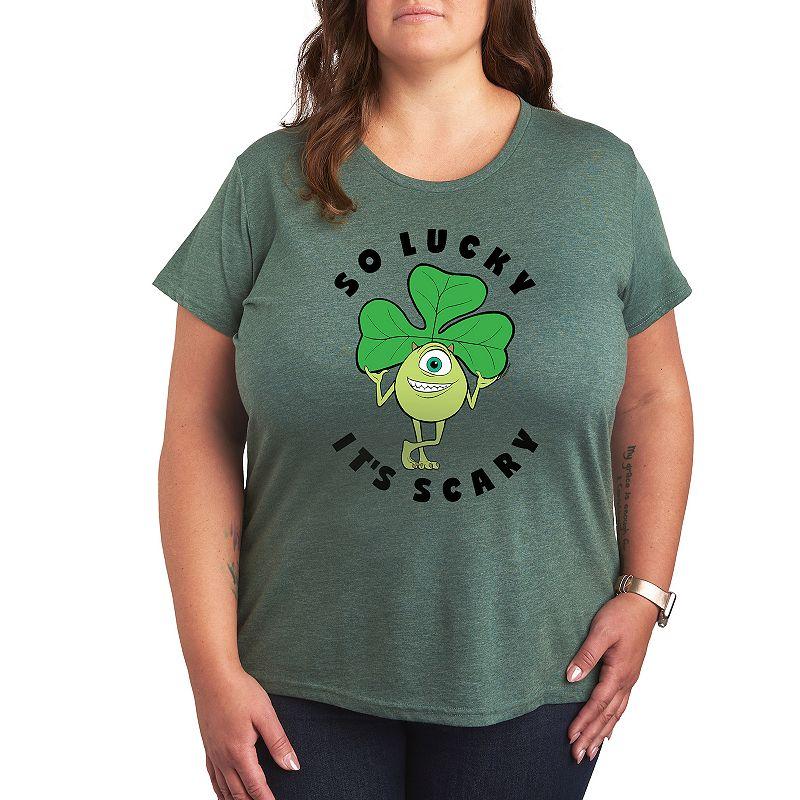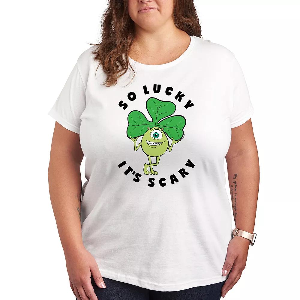 She will love showing off her style with this Disney / Pixars Monsters, Inc. Plus So Lucky Its Scary Graphic Tee Disney / Pixar FEATURES Short sleeves CrewneckFABRIC & CARE Solid Color: Cotton ; Heather Colors: Cotton/Polyester Machine wash Imported Size: 2X. Color: Beig/Khaki. Gender: female. Age Group: adult.