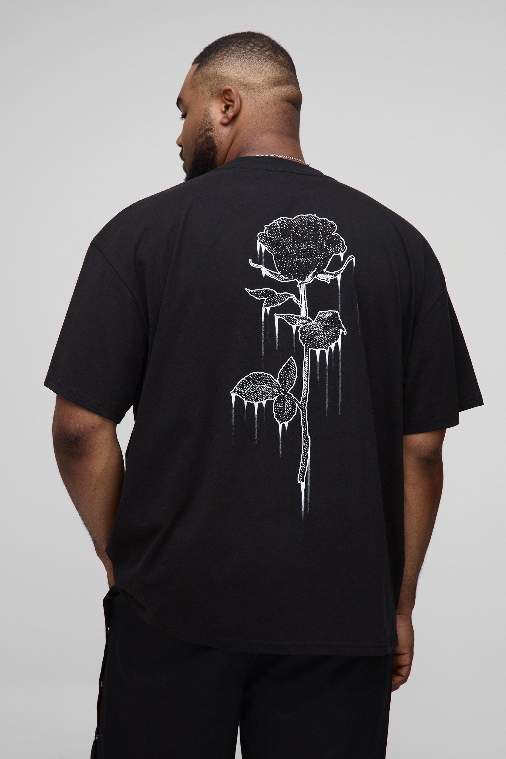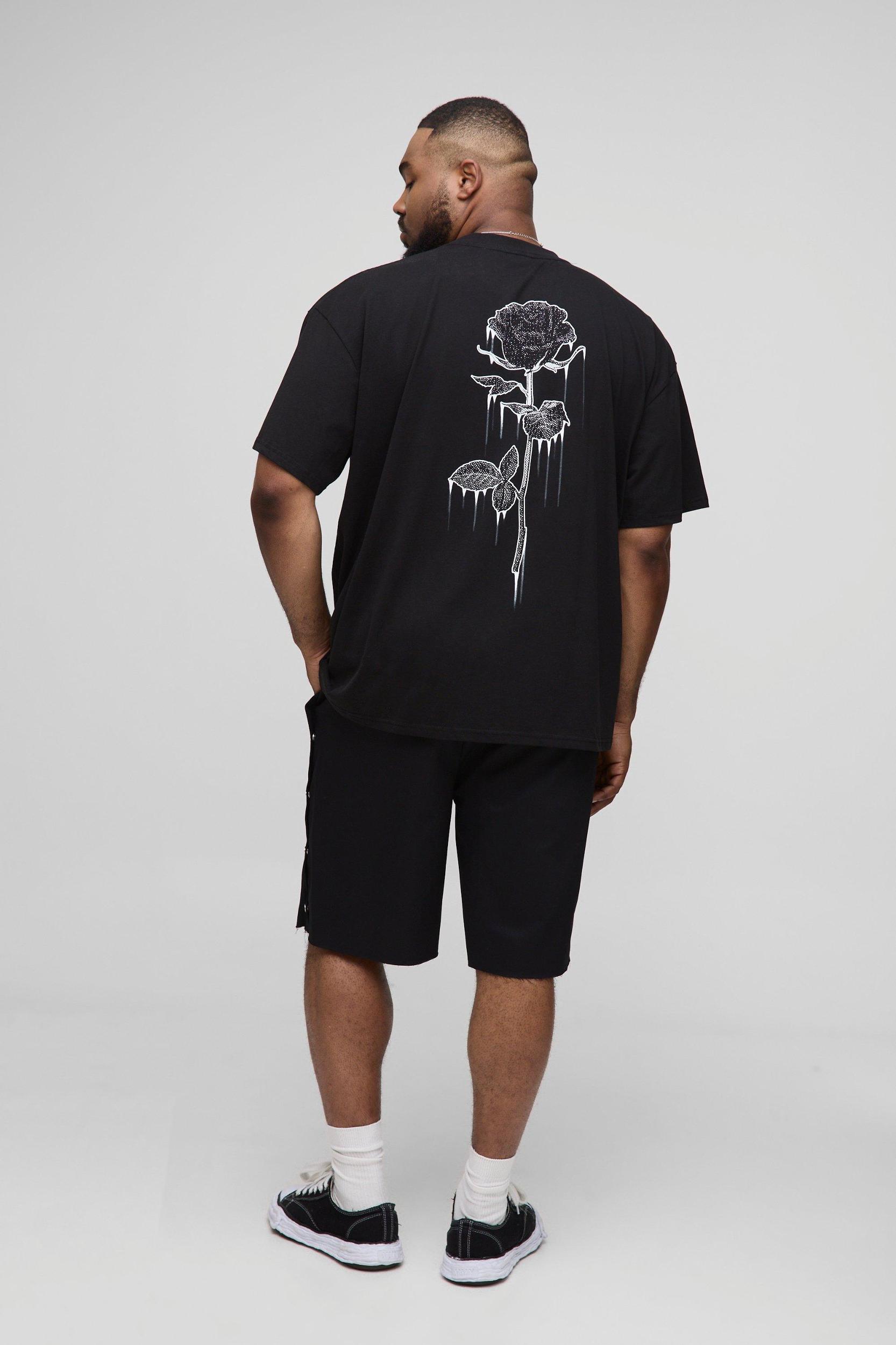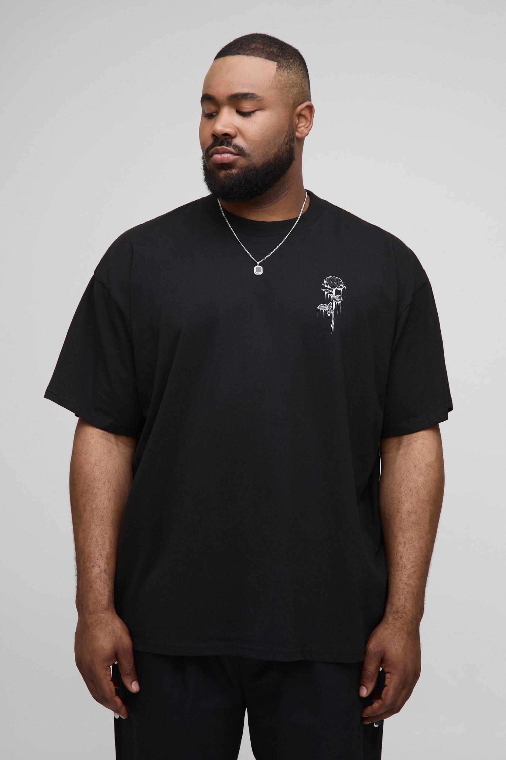 Plus Drip Floral Line Drawcord Oversized T-Shirt | boohooMAN USA