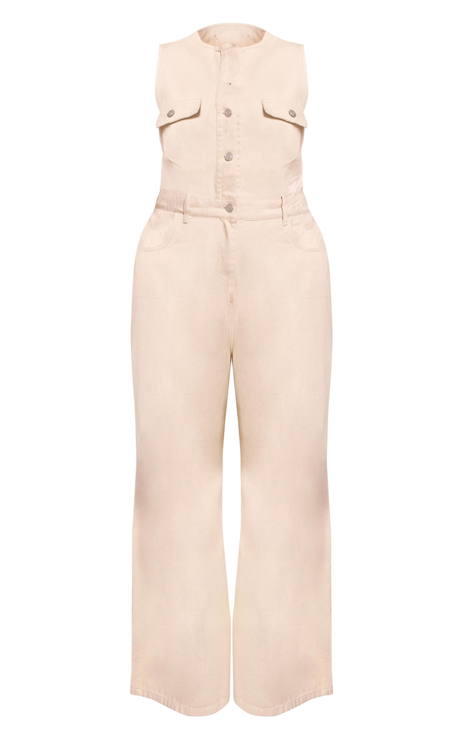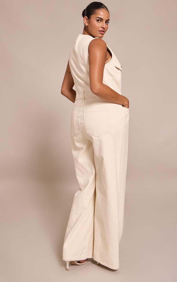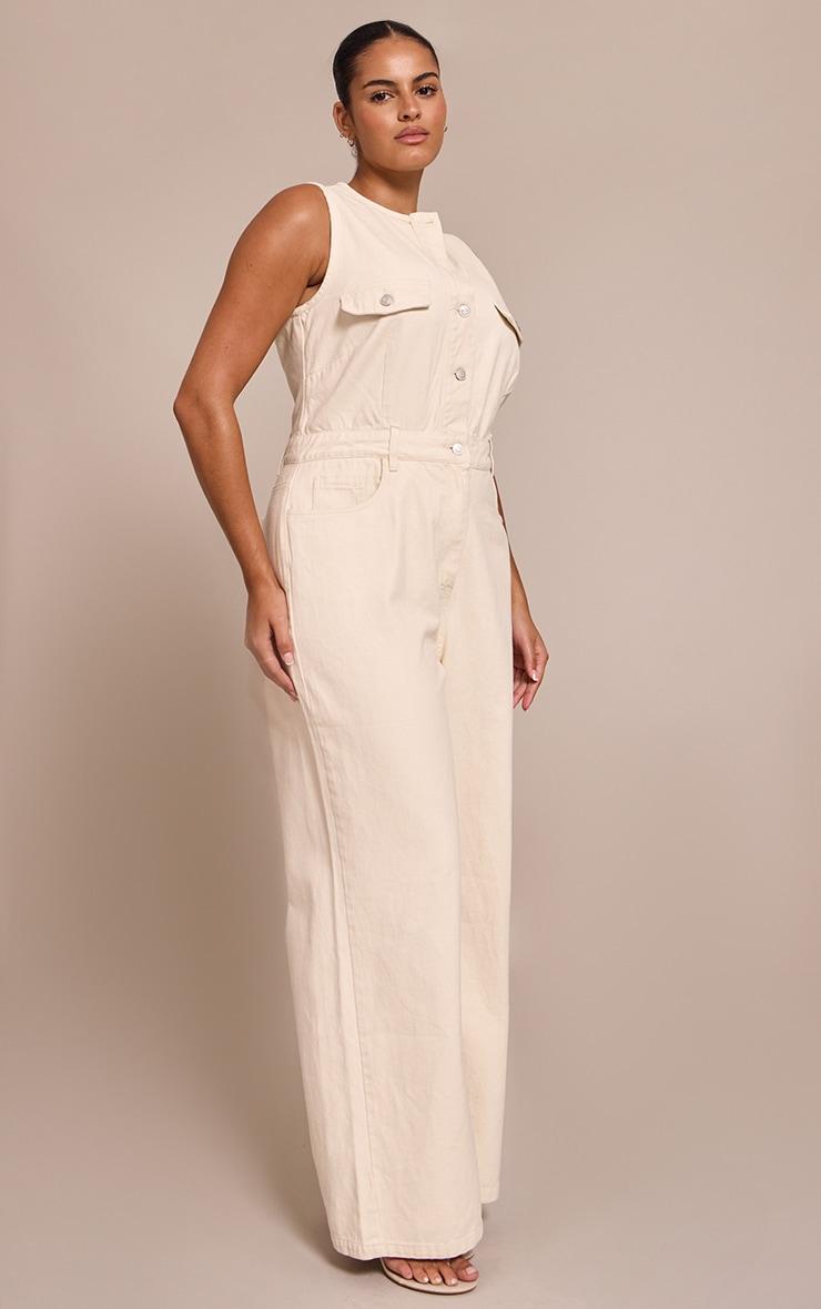 The plus ecru sleeveless shirt denim jumpsuit is your one-and-done piece for effortless styling. The sleeveless cut keeps it transitional and versatile. Dress it up with wedges and gold accessories for brunch dates, or layer under a trench coat with sneakers for casual days.Length approx 155cm/61inch (Based on sample size US 12)Model wears size UK 16/ EU 44/ AUS 16/ US 12Model Height - 5ft 9inchp]:!mb-4inch>Brand: PrettyLittleThingCategory: DenimProduct type: Denim JumpsuitsColor: EcruMaterial: Rigid DenimNeckline: ShirtSleeves: SleevelessOccasion: Day