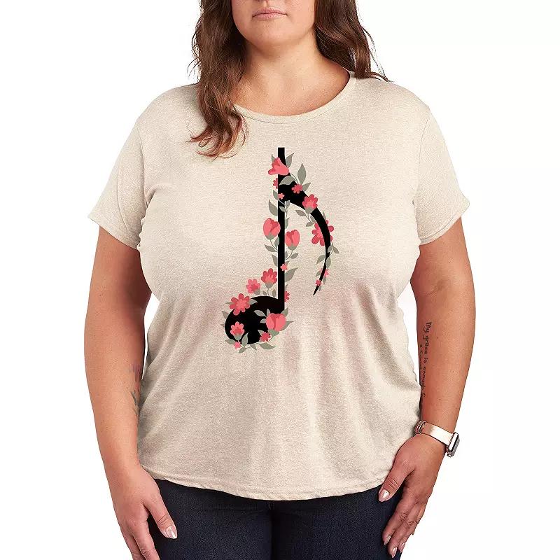 She will love showing off her style with this Plus Floral Music Note Graphic Tee. FEATURES Short sleeves CrewneckFABRIC & CARE Solid Colors: Cotton, Heather Colors: Cotton/Polyester Machine wash Imported Size: 1X. Color: Beig/Khaki. Gender: female. Age Group: adult.
