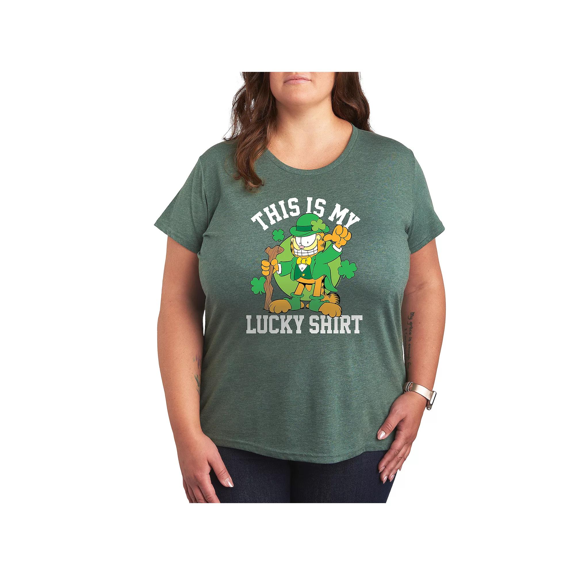 She will love showing off her style with this Plus Garfield This Is My Lucky Shirt Graphic Tee. FEATURES Short sleeves CrewneckFABRIC & CARE Solid Color: Cotton ; Heather Colors: Cotton/Polyester Machine wash Imported Size: 4X. Color: Green. Gender: female. Age Group: adult.