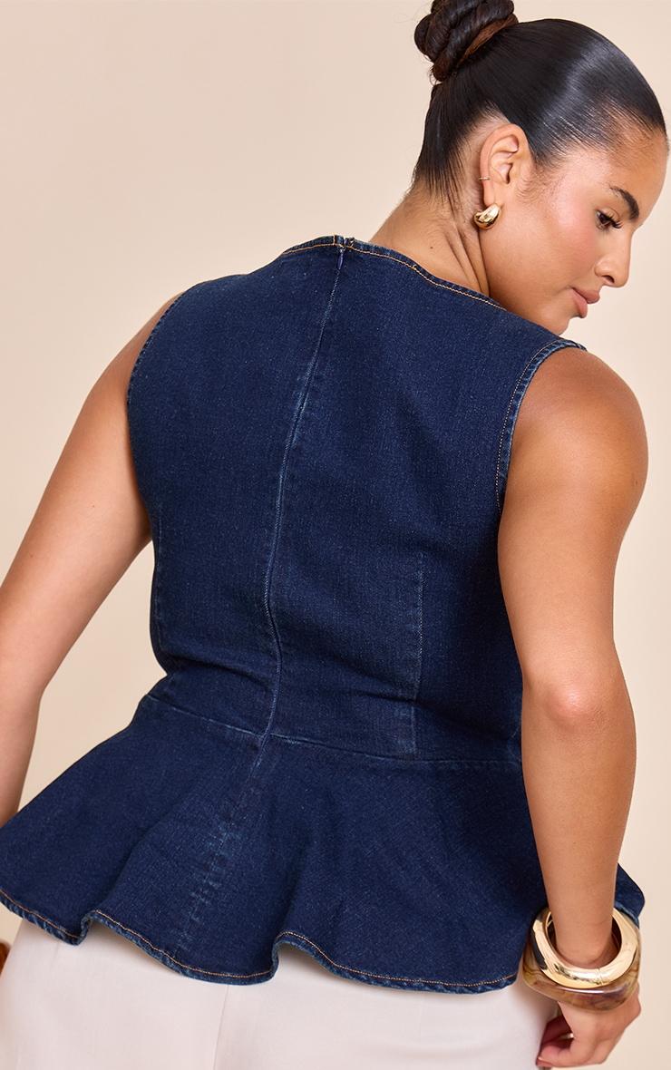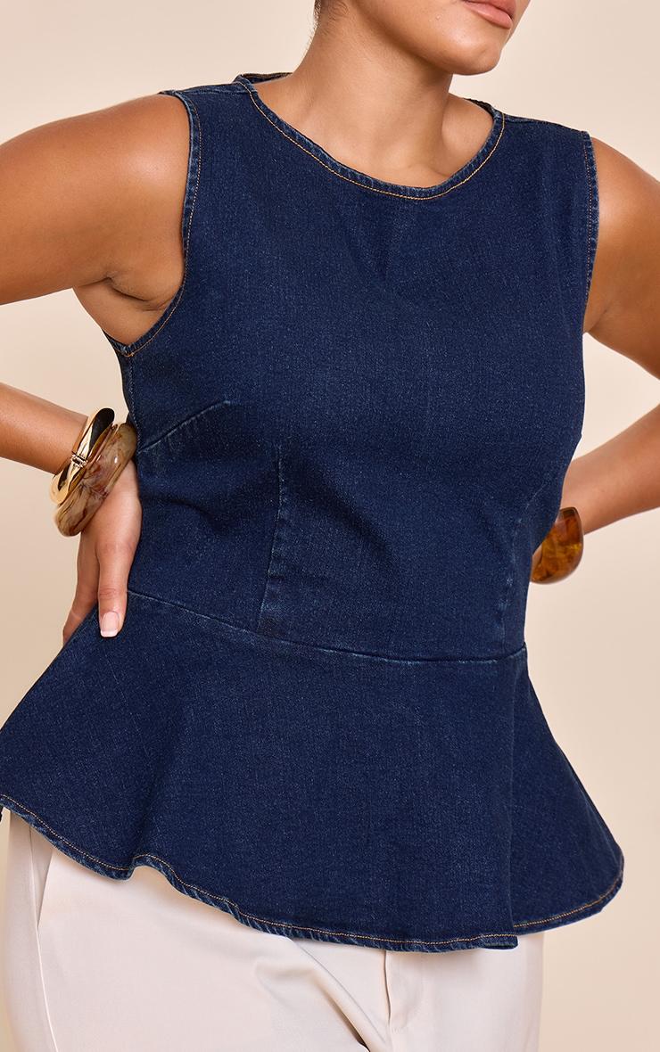 Add structure with the plus indigo boatneck peplum sleeveless denim top. Made from an indigo denim material, it features a boat neckline, peplum hem, and sleeveless cut for chic detailing. Pair with slip on mule heels and gold earrings for a look like no other.Length approx 58.5cm/23inch (Based on sample size US 12)Model wears size UK 16/ EU 44/ AUS 16/ US 12Model Height - 5ft 9inchp]:!mb-4inch>Brand: PrettyLittleThingCategory: DenimProduct type: Denim TopColor: IndigoMaterial: Rigid DenimDesign: PlainNeckline: Boat NeckSleeves: SleevelessOccasion: Day