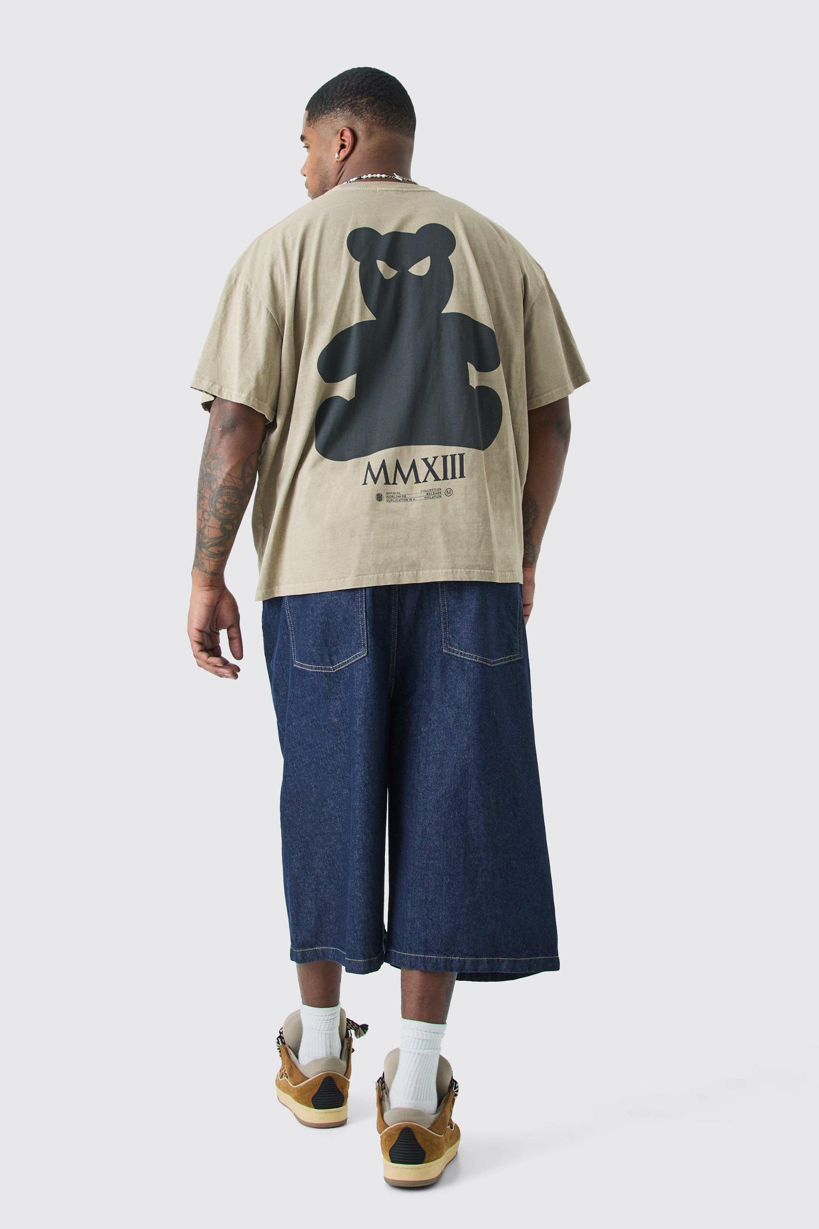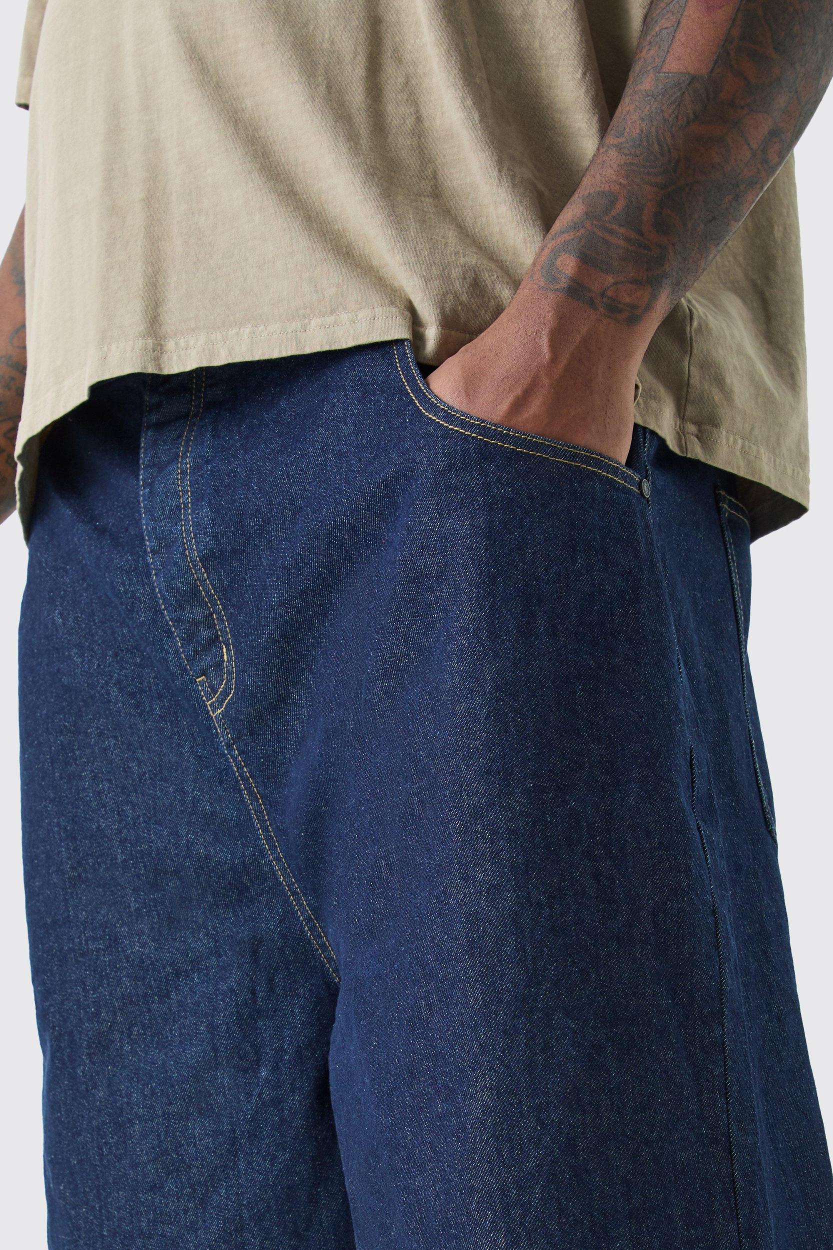 Plus Long Line Denim Jorts In Indigo | boohooMAN USA