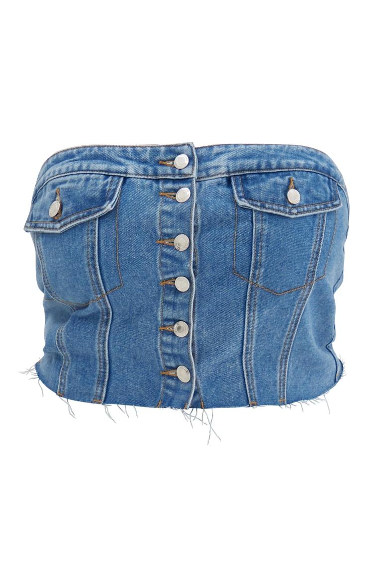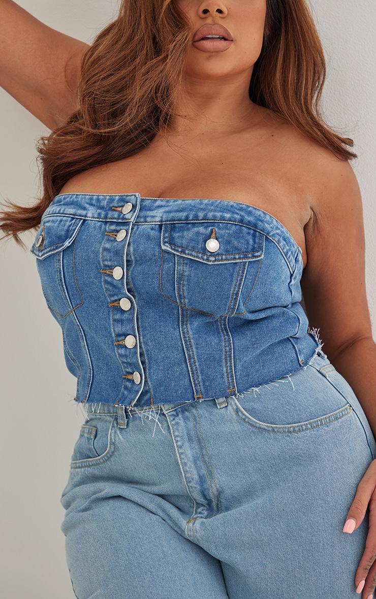 Add some denim feels into your weekend look with this crop top. Featuring a denim mid blue wash material with a button-up front, a cropped length and a corset style, how could you say no to this dreamy piece Just add your denim jeans and trusty high heels for a stylish combo. Length approx 34cm/13.5 (Based on a sample size UK 16) Model wears size UK 16/ EU 44/ AUS 16/ US 12 Model Height - 5ft 8