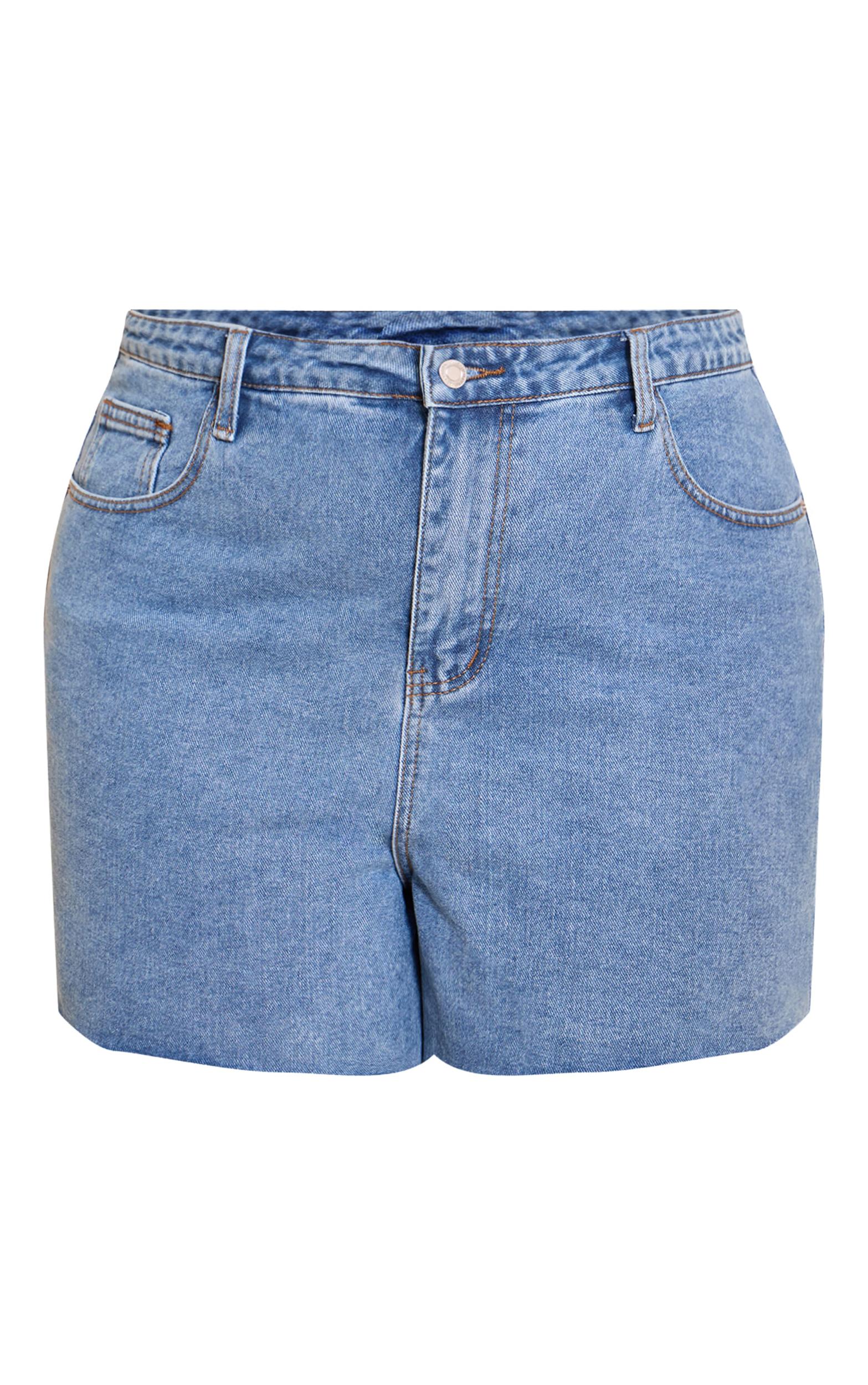 Effortless confidence begins with a foundation piece that simply works. Meet the plus mid blue wash raw hem denim hotpant, your new go-to for refined everyday style in a versatile mid blue hue. This classic five-pocket design features a flattering high-rise waist with a practical button and zip fly, culminating in a distinctive raw hem finish that adds an edge to its contemporary short length. Pair these essential hotpants with a crisp white t-shirt and sneakers for a laid-back daytime aesthetic, or elevate the look with a sleek bandeau top and block-heeled sandals for an easy evening transition.Length approx 48.5cm/19inch (Based on sample size US 12)Model wears size UK 16/ EU 44/ AUS 16/ US 12Model Height - 5ft 9inchp]:!mb-4inch>Brand: PrettyLittleThingCategory: DenimProduct type: Denim ShortsColor: Mid Blue WashMaterial: Rigid DenimDesign: PlainNeckline: BandeauOccasion: Day
