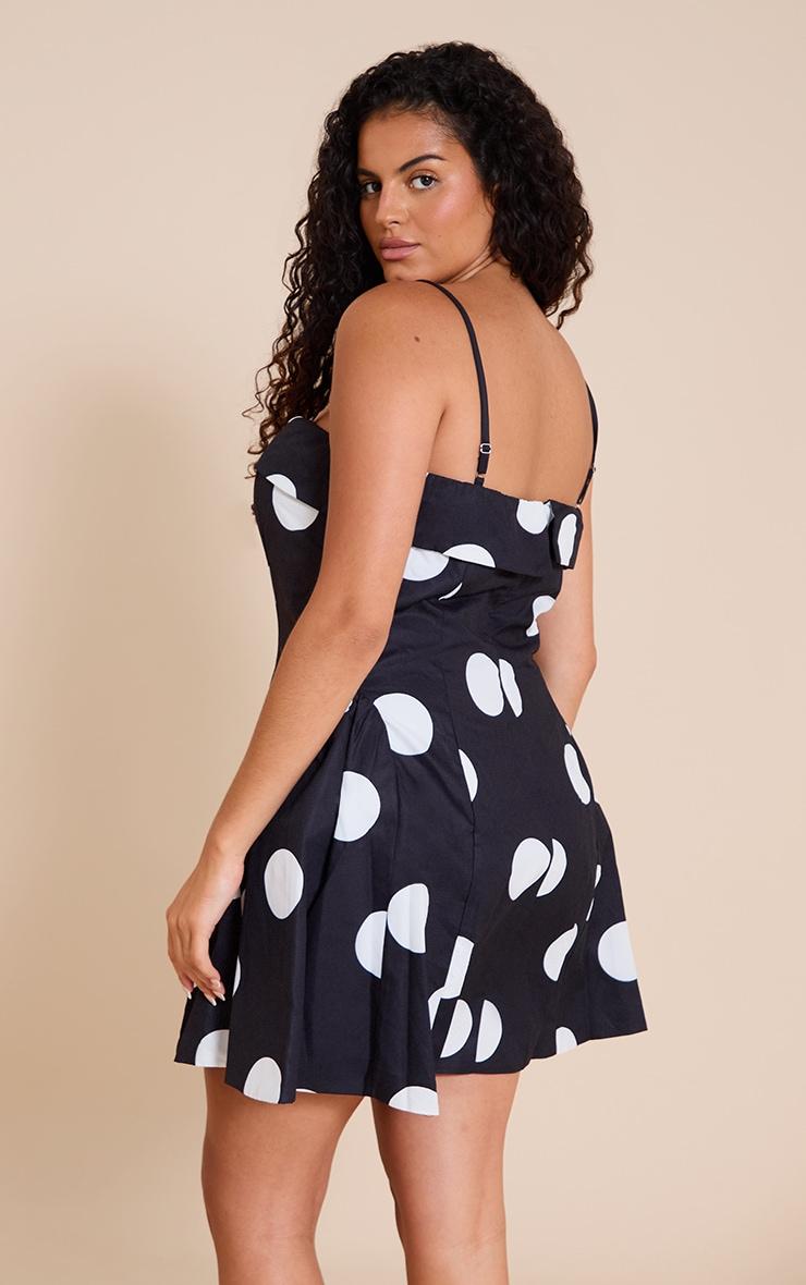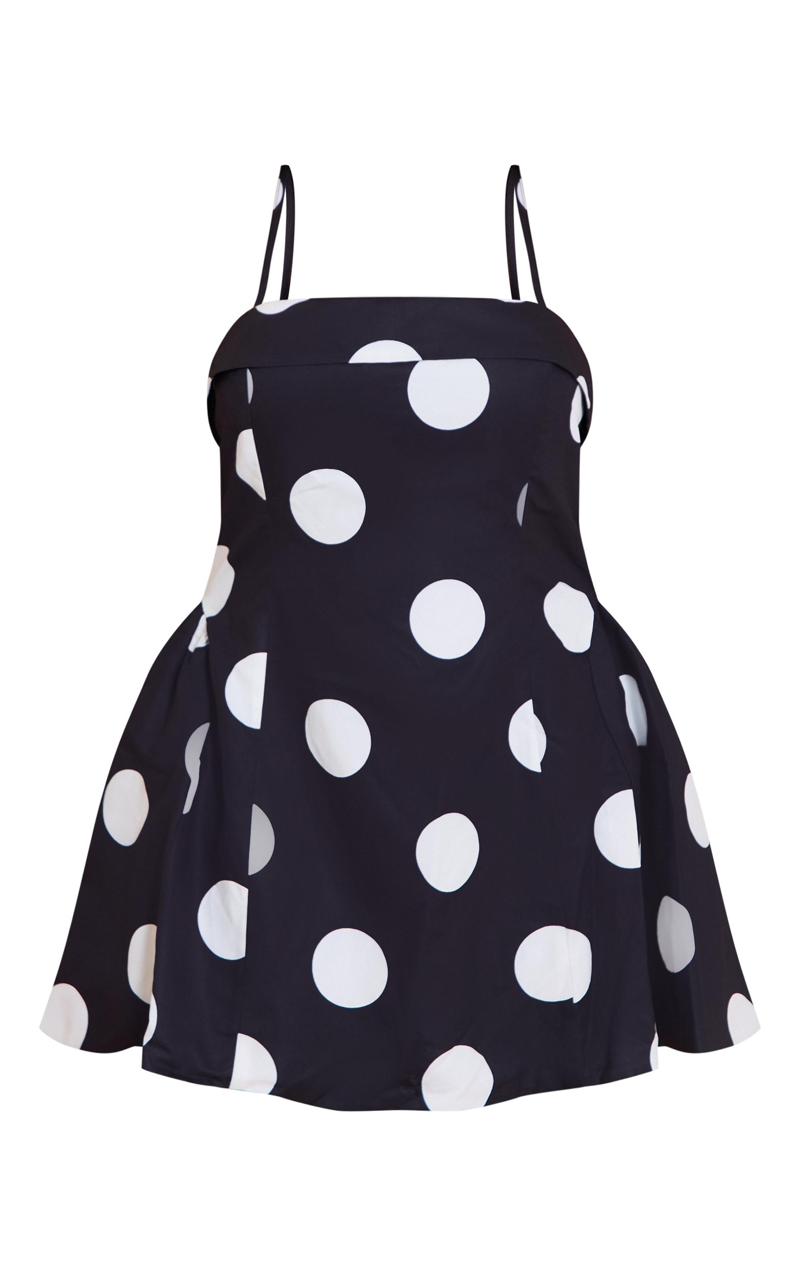 Be bold in this plus monochrome polka dot strappy structured shift dress. Brought to you in monochrome polka dot material, this dress has thin straps, a foldover neckline and structured skirt detailing. Pair it with black kitten heels and a chic shoulder bag for a classic look.Length approx 85cm/33.5inch (Based on sample size US 12)Model wears size UK 16/ EU 44/ AUS 16/ US 12Model Height - 5ft 9inchp]:!mb-4inch>Brand: PrettyLittleThingCategory: DressesProduct type: Shift DressColor: MonochromeMaterial: Woven CrepeNeckline: Straight NeckSleeves: Spaghetti StrapOccasion: Occasion