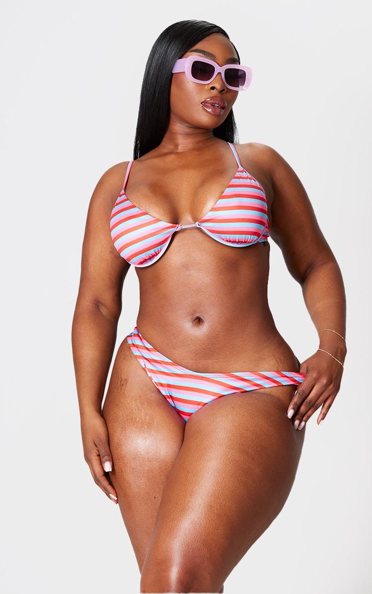Get your glow on with this plus multi striped bikini bottom. Brought to you in a multi striped hue material, these bikini bottoms are unreal. Simply style with the matching top, shades and sandals for the ultimate beachy vibe. Length approx 28cm/11inch (Based on a sample size UK 16) Model wears size UK 16/ EU 44/ AUS 16/ US 12Model Height - 5ft 6inchp]:!mb-4inch>Category: SwimwearProduct type: High Leg Bikini BottomColor: MultiMaterial: SwimOccasion: Day