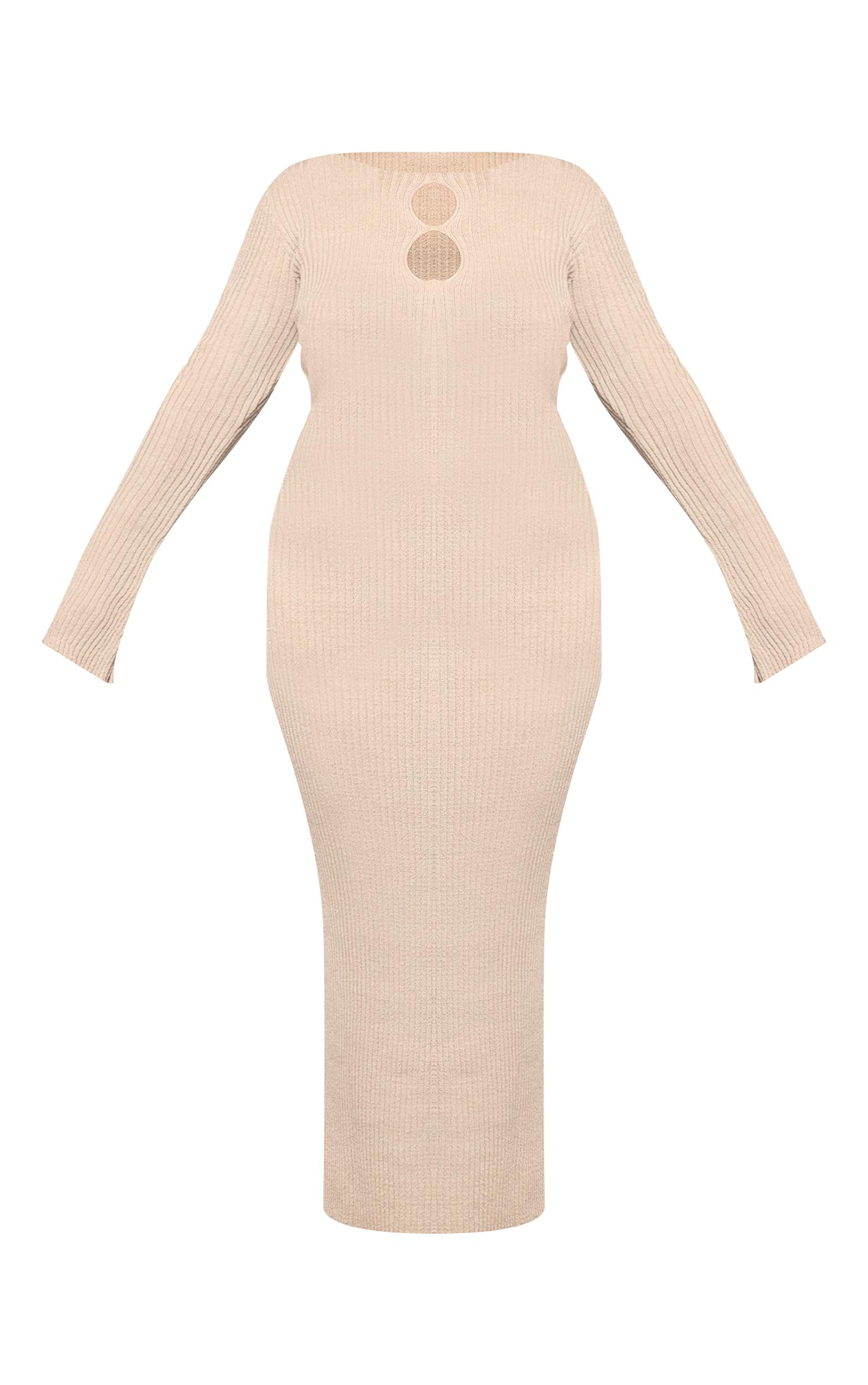 Master effortless style in the plus oatmeal ribbed keyhole knitted midaxi dress. This oatmeal ribbed design features an elegant keyhole at the neckline, long sleeves, and a sophisticated midaxi length. Transition seamlessly from daytime engagements to social gatherings. Complete the look with chic kitten heels and a sleek clutch bag for a polished ensemble.Length approx 155cm/61inch (Based on sample size XL)Model wears size XLModel Height - 5ft 10inchp]:!mb-4inch>Brand: PrettyLittleThingCategory: KnitwearProduct type: Bodycon DressColor: Oatmeal Material: KnitOccasion: Day