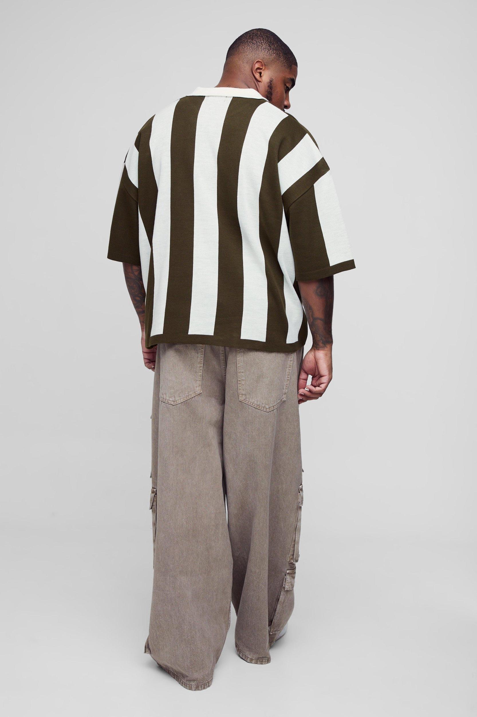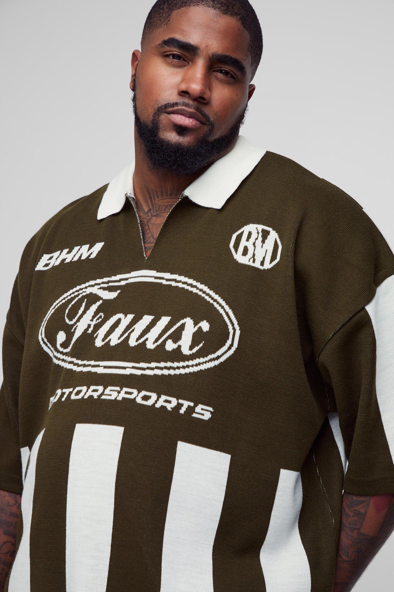 Plus Oversized Boxy Football Knitted Polo | boohooMAN USA