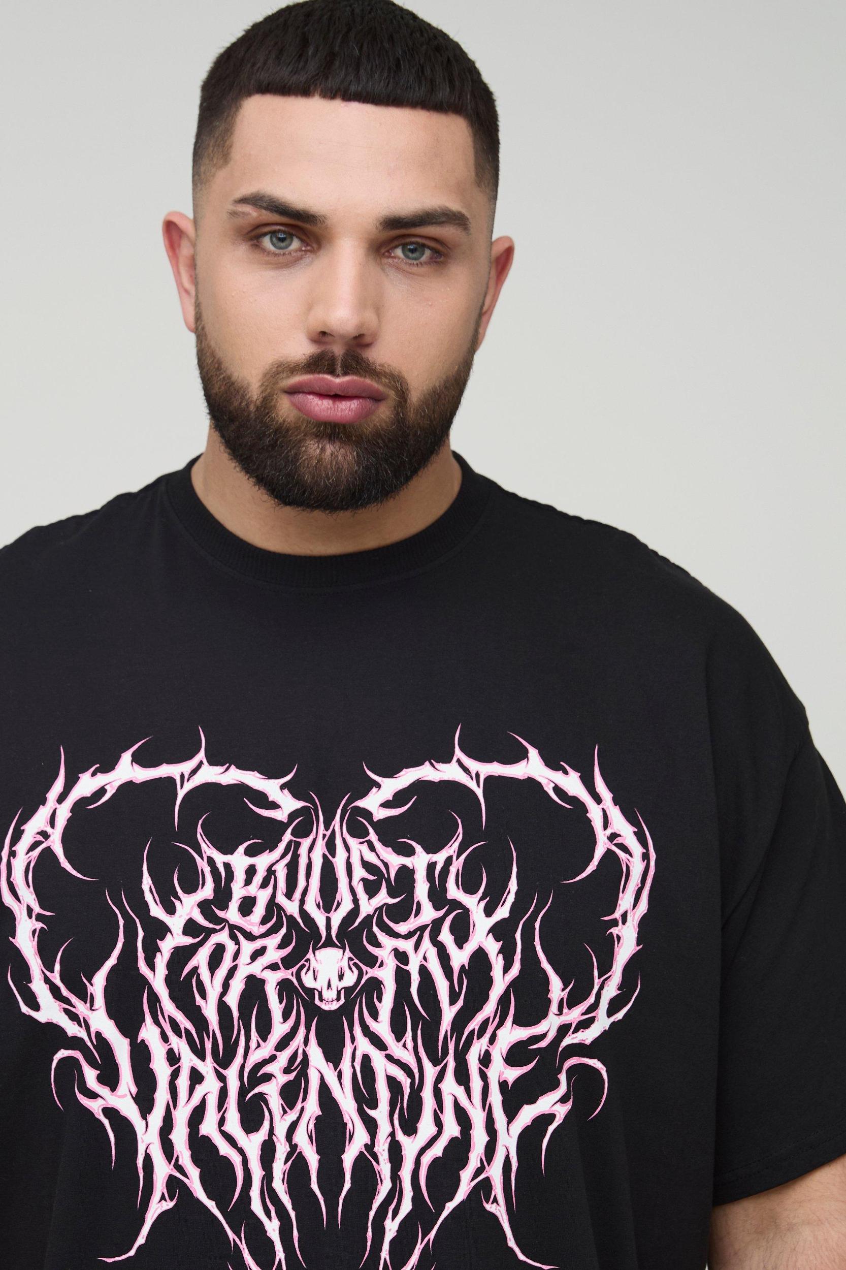 Plus Oversized Bullet for My Valentine License Print T-Shirt | boohooMAN USA Product Image