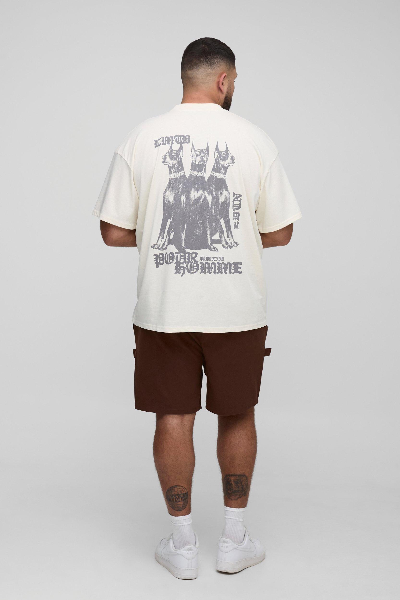 Plus Oversized Extended Neck Pour Homme Canine Graphic T-Shirt | boohooMAN USA Product Image