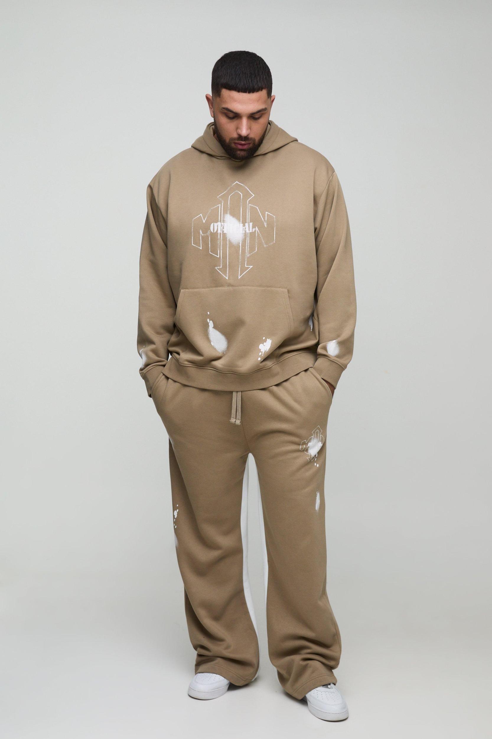Big and tall tracksuits for big, tall frames. Tracksuits are the ultimate wardrobe adaptors – from humble loungewear to hip street style – and we say that big size shouldn't mean small choice. We've got big & tall tracksuits for built, bulky and boxy guys from hoodies and crewneck sweats to big & tall sweatpants and cargo shorts. Choose relaxed or loose fit pants to balance thinner legs with a large top half, or choose slimming black with a contrasting gusset stripe to streamline your whole body. With sizes up to 5XL you can mix and match so you've got a comfy, reliable 'fit for every casual occasion. Style: Hooded TracksuitDesign: Paint SplatterFabric: JerseyDetail: GussetLength: RegularNeckline: HoodedSleeve Length: Long Sleeve