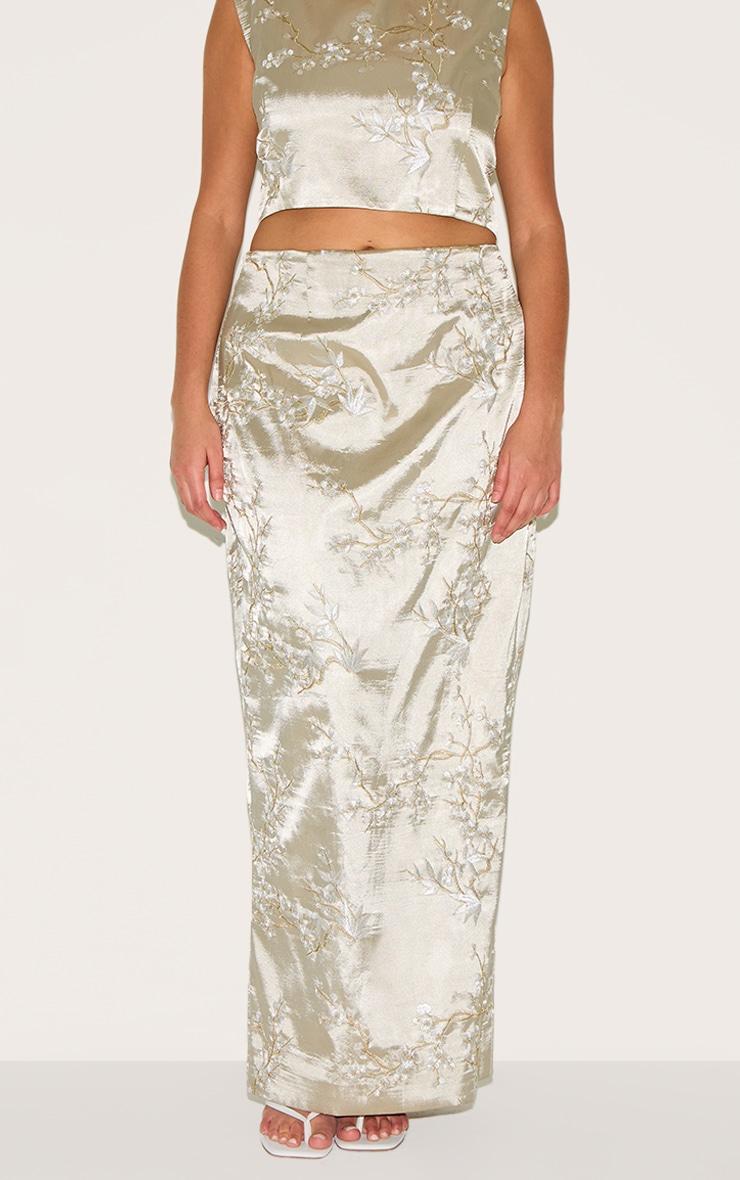 This plus pastel green floral embroidered maxi skirt is the perfect addition to your wardrobe. Made from a soft pastel green fabric, a floral embroidered design and a flattering maxi length. Style with a simple top and sandals for an easy, stylish look.Length approx 108cm/42.5inch (Based on sample size US 12)Model wears size UK 16/ EU 44/ AUS 16/ US 12Model Height - 5ft 9inchp]:!mb-4inch>Brand: PrettyLittleThingCategory: Co-ordsProduct type: Maxi SkirtColor: Pastel GreenMaterial: SatinDesign: PlainOccasion: Occasion