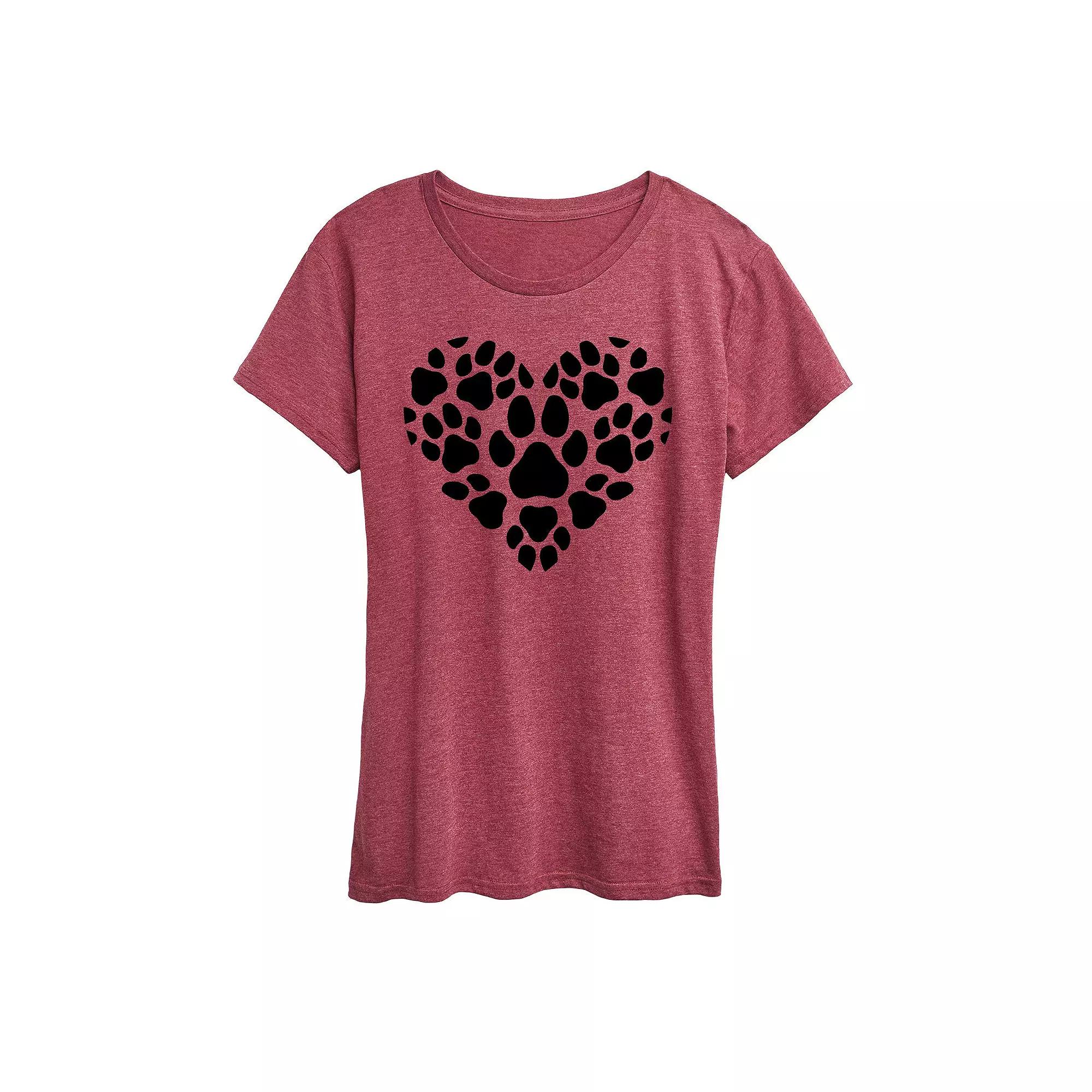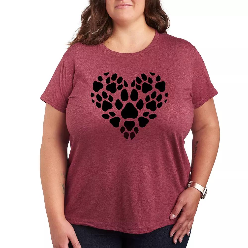 Heather Wine Paw Print Heart Graphic Tee - Women & Plus. Show off your pride for your pupper with this comfy cotton-blend tank sporting a precious graphic that tells the world where your heart lies. Size S: 26 long from high point of shoulder to hemSize & fit: Relaxed-fit garment with a slightly longer hem. Fits true to size.50% cotton / 50% polyesterMachine wash; tumble dryImported, screen printed in the USA