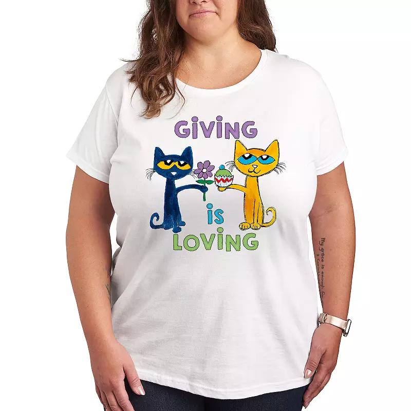 She will love showing off her style with this Plus Pete the Cat Giving Is Loving Graphic Tee. FEATURES Short sleeves CrewneckFABRIC & CARE Cotton Machine wash Imported Size: 1X. Color: White. Gender: female. Age Group: adult.