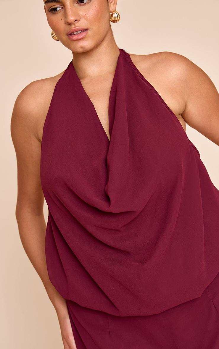 Turn heads in this plus plum chiffon cowl neck maxi dress. Brought to you n a plum chiffon material with a cowl neck design and a flattering maxi length. Team this plus maxi dress with heels and minimal accessories to let the dress do the talking.Length approx 139.5cm/55inch (Based on sample size US 12)Model wears size UK 16/ EU 44/ AUS 16/ US 12Model Height - 5ft 9inchp]:!mb-4inch>Brand: PrettyLittleThingCategory: DressesProduct type: Bodycon DressColor: PlumMaterial: ChiffonDesign: PrintNeckline: CowlSleeves: SleevelessOccasion: Evening