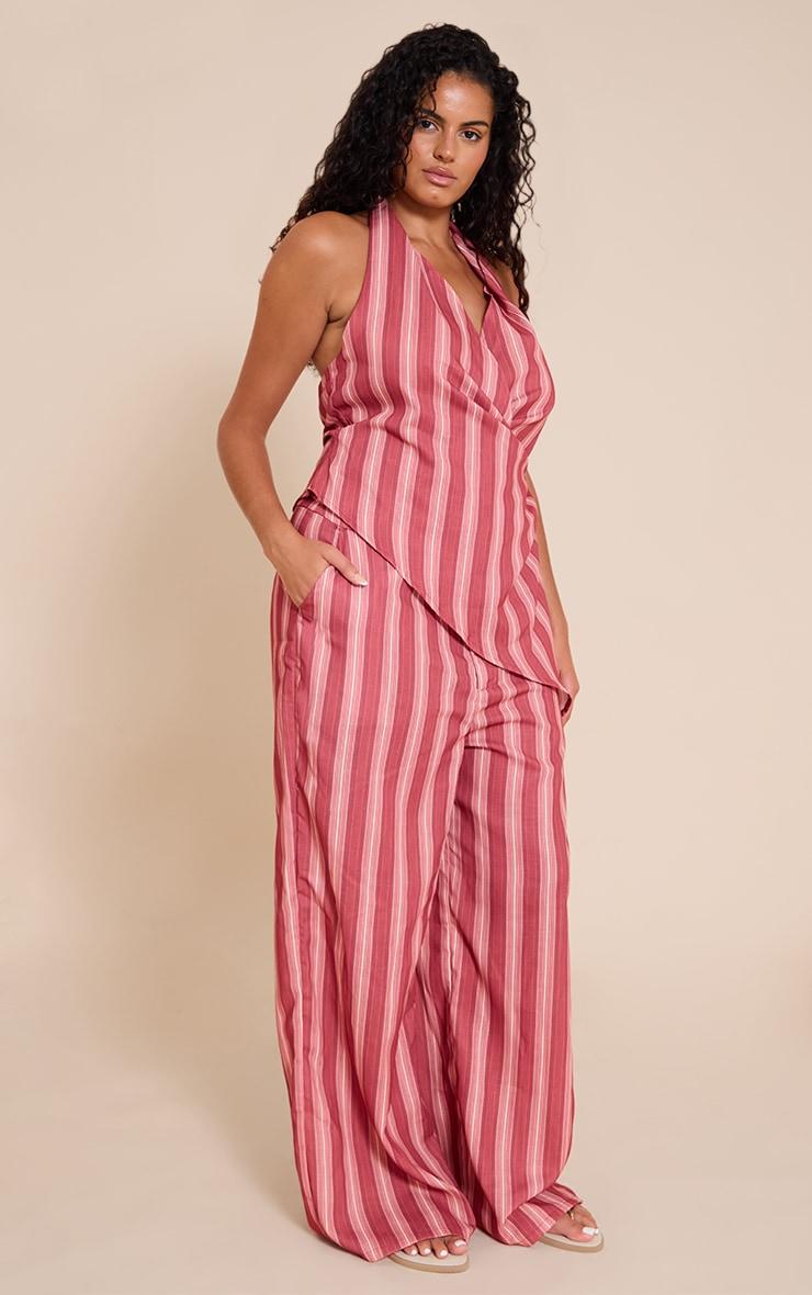Own your day in a piece that blends artful detail with effortless form. The plus red pinstriped halterneck top presents a confident, relaxed silhouette, marked by its distinctive V-neck halter design and an asymmetric wrap front that creates a subtle drape. The refined pinstripes add a knowing visual dimension to the bold red hue. Style this versatile top with the coordinating tailored pants for a complete, knowing two piece set, or pair it with crisp white wide-leg pants for a fresh take on elevated daywear that promises an assured presence wherever your agenda takes you.Length approx 58.5cm/23inch (Based on sample size US 12)Model wears size UK 16/ EU 44/ AUS 16/ US 12Model Height - 5ft 9inchp]:!mb-4inch>Brand: PrettyLittleThingCategory: Co-ordsProduct type: Vest TopColor: RedMaterial: Faux LinenNeckline: PlungeSleeves: SleevelessOccasion: Day